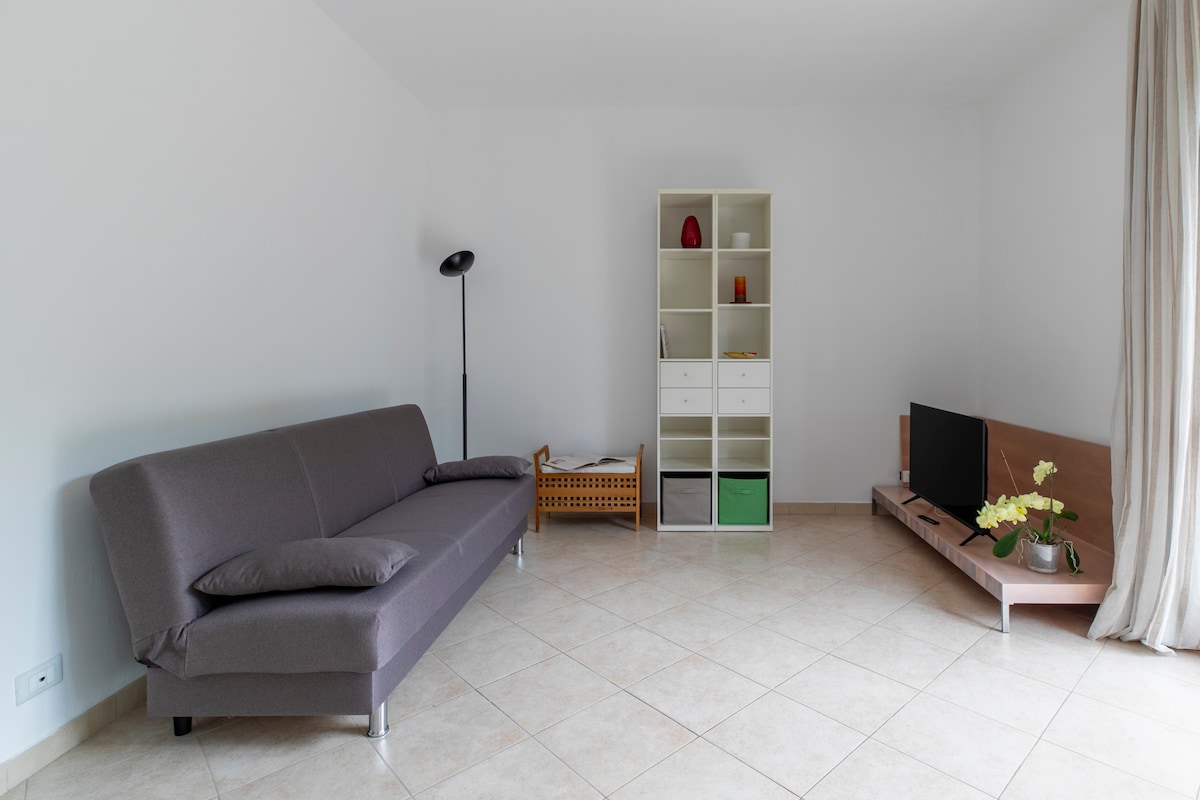 Spacious and modern studio apartment, located just a stone's throw away from public transport, with a 160x200 cm double bed, wardrobe, and a fully equipped kitchen with an induction hob, microwave, dishwasher, crockery, and basic supplies. The bathroom has a window and shower. Linens are provided. Free Wi-Fi, air conditioning, independent heating, and a comfortable outdoor space where you can have lunch or dinner and relax. Private and fenced parking for your peace of mind.