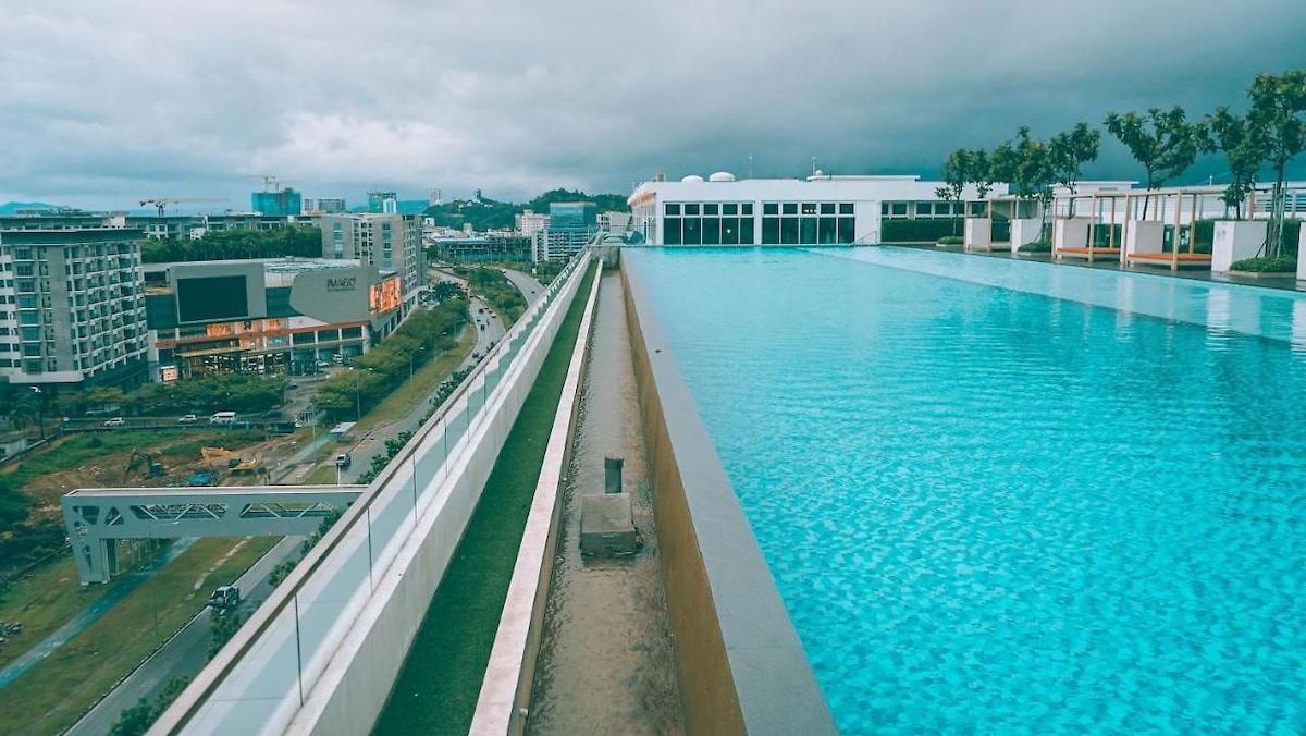 Gala Trendy 2BR APT InfinityPool w/ privateparking