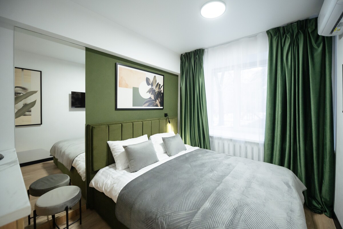 Căn hộ studio ấm cúng được cải tạo ở trung tâm gần ga tàu điện ngầm Arsenalna. Căn hộ ở tầng 2, từ cửa sổ bạn có thể nhìn thấy một công viên đẹp và Tu viện Kyyevo-Pechers'ka Lavra. Căn hộ có mọi thứ cần thiết để sống thoải mái và được vệ sinh và khử trùng kỹ lưỡng trước mỗi khách. Hoàn hảo cho kỳ nghỉ hoặc chuyến công tác.