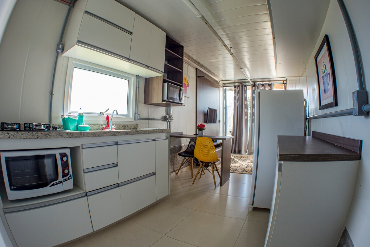 Completa Infraestrutura -Wifi -Ar-Condicionado -Piscina -Segurança 24h monitorada -Portaria eletrônica -Completamente mobiliado -Churrasqueira -Lavandeira -Horta comunitária -Estacionamento Habitações sustentáveis -Energia com geração fotovoltaica -Água de poço artesiano (aquífero Guarani) -Esgoto tratado com biogestores -Containers termicamente isolados Próximo ao Shopping Botucatu e Fórum