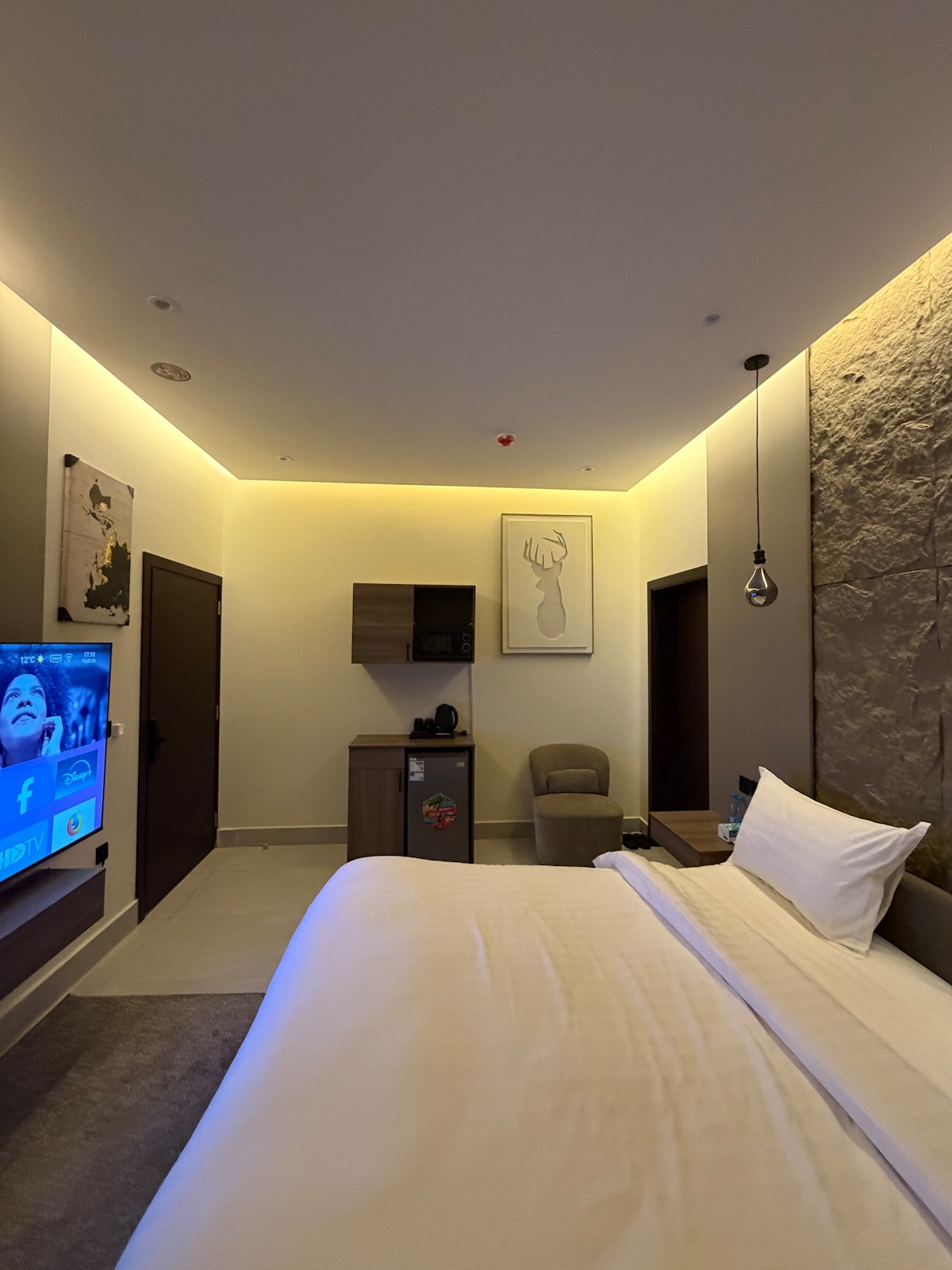 Studio này là đỉnh cao của những chuyến đi của chúng tôi trên khắp thế giới, từ sự yên tĩnh của Bali và quần đảo Philippines, đến sự kỳ diệu của thiên nhiên ở Nam Phi và vẻ đẹp của kiến trúc châu Âu, đến những chi tiết tinh xảo mà chúng tôi đã rút ra từ các khách sạn boutique trên khắp thế giới, mỗi góc trong đó đã được thiết kế cẩn thận để kết hợp sự ấm áp, sang trọng và bản sắc hiện đại. Trong trang trí, bạn sẽ nhận thấy các yếu tố lấy cảm hứng từ các chuyến đi của chúng tôi để sống một trải nghiệm tinh tế và thanh thản như thể bạn đang ở một điểm đến toàn cầu trong Riyadh
