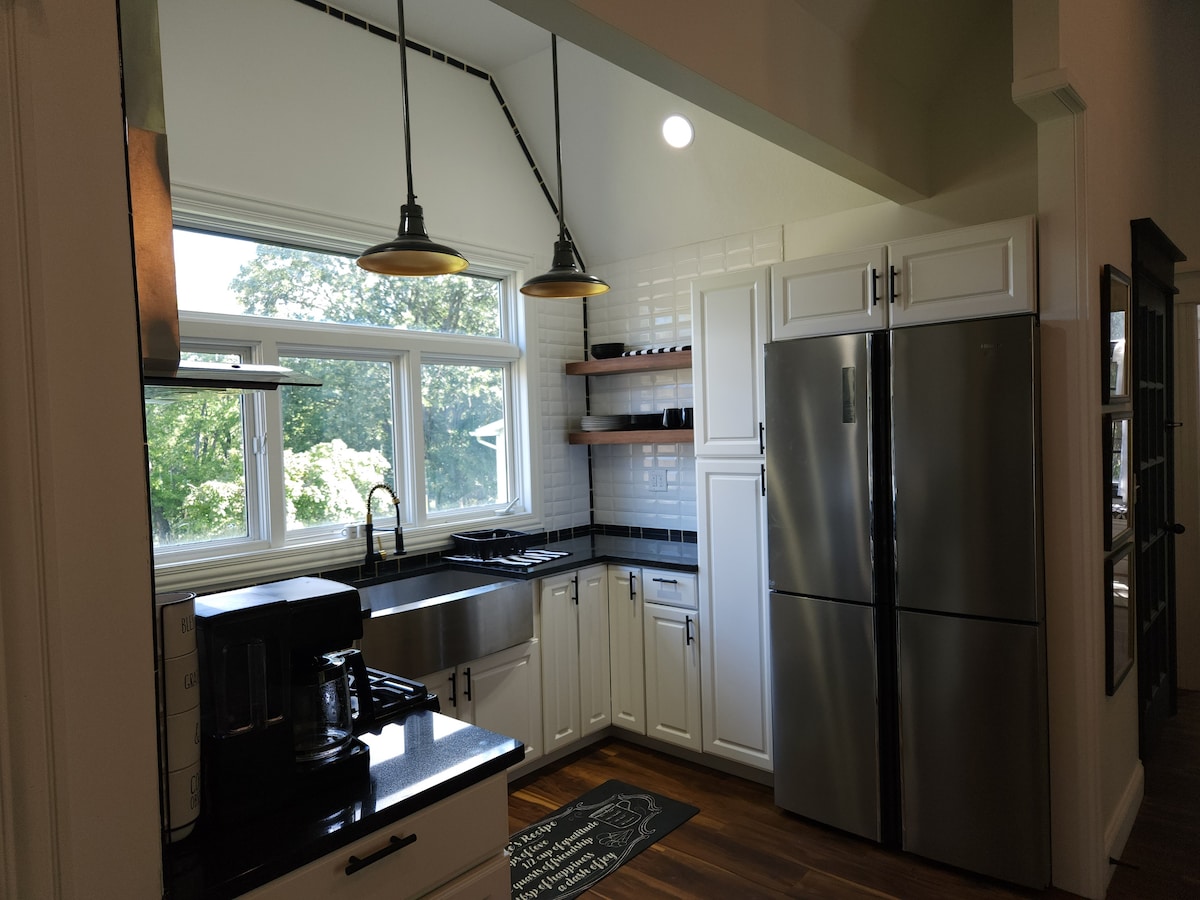 Ngôi nhà nông trại 100 năm tuổi hoàn toàn quyến rũ được làm mới. Trực tiếp đối diện lối vào Olivet. Tất cả các giường mới với bộ đồ giường sang trọng. Tầng 1 có thể sử dụng xe lăn với phòng ngủ cỡ queen với cửa rộng hơn và cuộn trong phòng tắm. Bếp có mặt bàn thạch anh có tất cả các tiện ích. TV 55"trong phòng khách được lắp đặt 4k & Roku, v.v. được lắp đặt. Đây đơn giản là ngôi nhà nông trại nhỏ dễ thương nhất! 💙 Bồn tắm nước nóng 6 người mở cửa vào tháng 3 năm 2024!