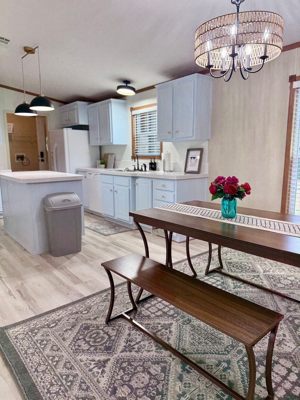 Escape to our enchanting farmhouse. Sink into a luxurious king-size bed and indulge in a spacious walk-in shower. A large laundry room adds convenience. Unleash your inner chef in the fully equipped kitchen. Enjoy entertainment on the 65-inch TV with streaming services in the living room. Disconnect from everyday noise. Reconnect with what matters. Unwind, rejuvenate, create lasting memories.