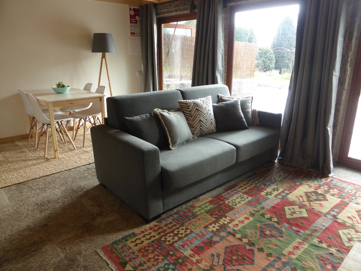 Studio không gian mở với 45 m2. Trang bị đầy đủ tiện nghi (khăn trải giường, khăn tắm, thiết bị, đồ sành sứ, truyền hình cáp, Wi-Fi, rotisserie ...). Bầu không khí ấm cúng và riêng tư. Lý tưởng cho các gia đình. Vườn có tầm nhìn tuyệt vời ra biển với không gian để ăn uống và giao lưu. Nơi yên tĩnh lý tưởng để thư giãn và tận hưởng thiên nhiên. Một vài km và có lối đi thuận tiện đến các thành phố chính của miền Bắc đất nước. (Braga, Viana do Castelo, Porto, Guimarães ...)