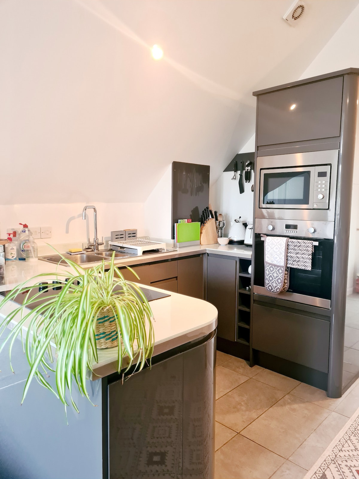 Một căn hộ penthouse một giường hiện đại trong vòng 5 phút đi bộ đến làng Bia và Bãi biển Bia. Tận hưởng khung cảnh nông thôn tuyệt đẹp từ ban công.