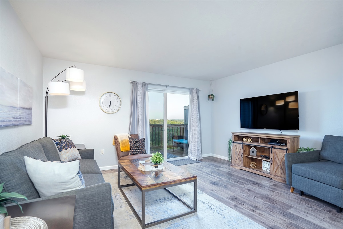 Chào mừng bạn đến với Chasing Vineyards, một căn hộ cao cấp hoàn toàn mới với tầm nhìn khó quên. Tiện nghi yêu thích: 🏊♂️ 2 Hồ bơi ngoài trời và bếp nướng BBQ 🕹️ PacMan Arcade ☕️ Quán cà phê ⛳️ Đặt màu xanh lá cây Nằm ở vị trí trung tâm của tất cả các khu vui chơi giải trí của Branson: Cách Silver Dollar City 4 dặm - Cách Dải Branson 7 dặm Cách Công viên Tiểu bang Table Rock 5 dặm -6 dặm đến Dolly Parton's Stampede - Cách Bãi biển Moonshine 3 dặm -7 dặm đến Indian Point Marina (có dịch vụ cho thuê thuyền) Kỳ nghỉ hoàn hảo của bạn đang chờ đón bạn!