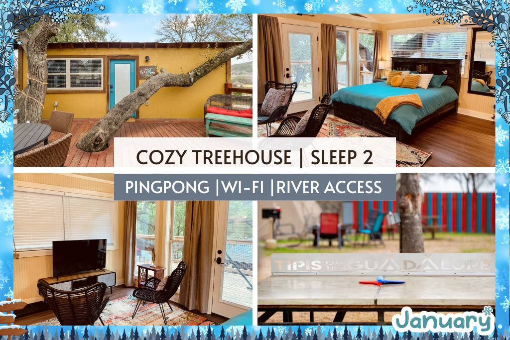 • Nơi nghỉ dưỡng dành cho các cặp đôi hẻo lánh ở Texas Hill Country - được Airbnb trao tặng 5% ngôi nhà hàng đầu và "Khách yêu thích". • Ẩn mình trên những tán cây trên đỉnh đồi (độ cao 1800 feet!) ở Texas Hill Country xinh đẹp. Được thiết kế với mục đích duy nhất là tạo ra một không gian ấm cúng cho các cặp đôi chia sẻ một dịp đặc biệt hoặc chỉ để thoát khỏi sự căng thẳng và bận rộn của cuộc sống hàng ngày. • Tận hưởng những con đường mòn đi bộ đường dài hoặc chỉ thư giãn trên võng nhà trên cây nhìn ra thung lũng xinh đẹp. • Đã bao gồm bữa sáng!