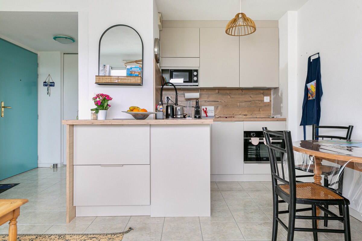 Cho thuê cabin căn hộ studio tuyệt đẹp 23 m2 được cải tạo hoàn toàn vào năm 2022 + sân thượng lớn ở tầng 1 hướng ra biển, bãi biển lớn của Carnac. Quang cảnh đặc biệt của bãi biển lớn và vịnh Quiberon. Chỗ đỗ xe riêng tại nơi cư trú. Phòng xe đạp, khóa. Căn hộ bao gồm: - 1 lối vào cabin, với 2 giường tầng - 1 phòng tắm được cải tạo, - 1 WC - 1 phòng khách/phòng khách - 1 nhà bếp đầy đủ tiện nghi Nhà hàng, tiệm bánh lúc 5 phút Super U ở độ cao 500 m