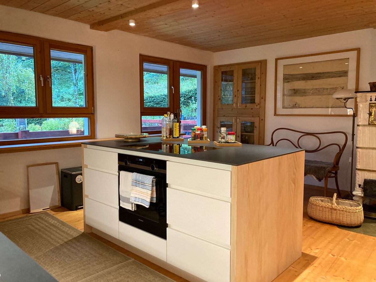 Chào mừng bạn đến với ngôi nhà nằm ở vị trí bình dị của chúng tôi ở rìa rừng. Tận hưởng sự yên tĩnh và sử dụng khu vực nướng thịt của chúng tôi để thư giãn vào buổi tối ngoài trời. Ngôi nhà của chúng tôi lý tưởng cho người đi bộ đường dài, người đi xe đạp leo núi và người đi xe máy. Vào mùa đông, nhiều dốc trượt tuyết và đường trượt tuyết xuyên quốc gia chỉ cách đó 15 phút. Sau một ngày hoạt động, bạn có thể thư giãn trong phòng xông hơi khô trong nhà của chúng tôi và sạc pin. Chỗ ở của chúng tôi có thể chứa tối đa 5 xe hơi và Wifi miễn phí.
