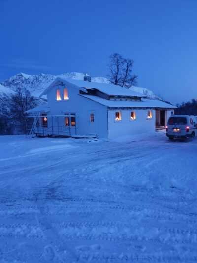 Nhà khách nhỏ bé này có tầm nhìn đẹp nhất trực tiếp từ nhà bếp và cửa sổ phòng ngủ của bạn. Vì không có đèn đường xung quanh, đây là nơi hoàn hảo để ngắm Aurora và tận hưởng một nơi nghỉ ngơi thư giãn riêng tư ở Bắc Cực. Chúng tôi sống bên cạnh với con trai và con mèo 6 tuổi của chúng tôi. Chúng tôi đang làm việc từ 8:00 về nhà từ khoảng 4:30chiều và vào cuối tuần. Dịch vụ tại chỗ: Sạc xe điện 400kr/Chuyển khoản riêng 500kr/Bồn tắm nước nóng 1200kr hoặc 100 € cho 2 ngày/Phòng xông hơi 500kr hoặc 40EUR mỗi lần sử dụng (chỉ dùng tiền mặt)