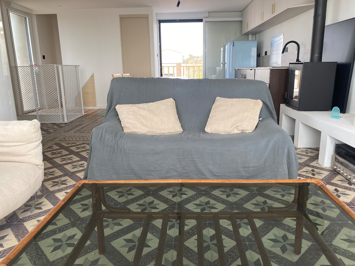 Chào mừng bạn đến với bờ biển trong một ngôi nhà hiện đại và sinh thái. Tận hưởng thiết kế nội thất thoải mái với gia đình hoặc bạn bè của bạn. Sử dụng xe đạp miễn phí, 1500 mét vuông sinh hoạt ngoài trời chung với đồ chơi cho trẻ em (lò xo, lò xo, cầu trượt), vườn rau, nhà kính và nhà gà. Đi dạo trên các bãi biển tuyệt vời của bờ biển Vendée và thư giãn ngay trung tâm khu vực Natura 2000 của "Dunes, rừng và đầm lầy Olonne".