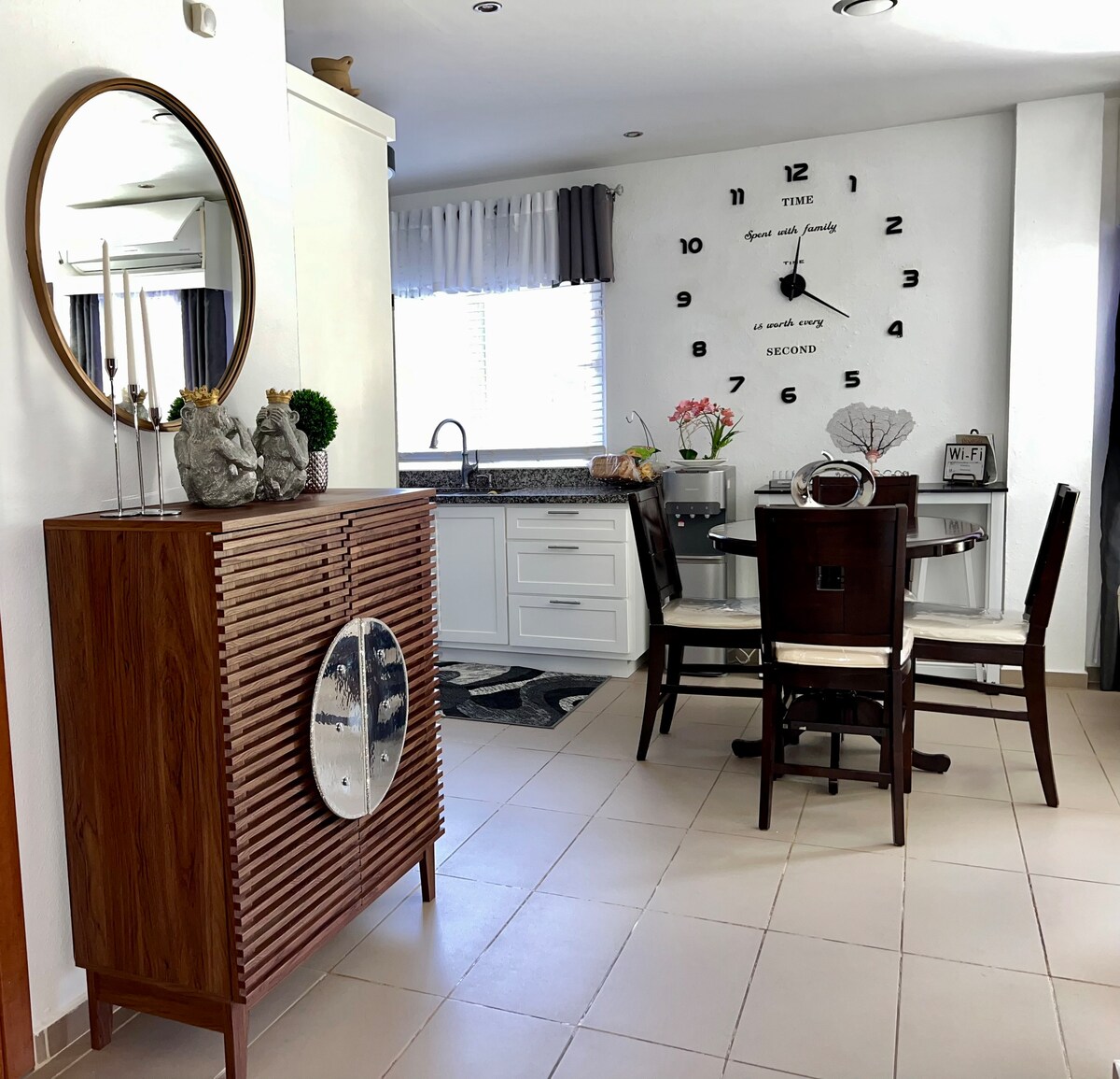 Enjoy your stay in a modern villa located in a quiet and secure area of Roatán. This spacious 3-bedroom villa features a private pool, Smart TV, fully equipped kitchen, and private parking. Vehicle available as an optional add-on for up to 5 guests. Not included in the reservation price. Comfortably sleeps up to 7 guests with 3 queen beds and a sofa bed. Just 7 minutes from the airport and 3 minutes from Mahogany Bay. Optional airport pick-up/drop-off service a (fee may apply).
