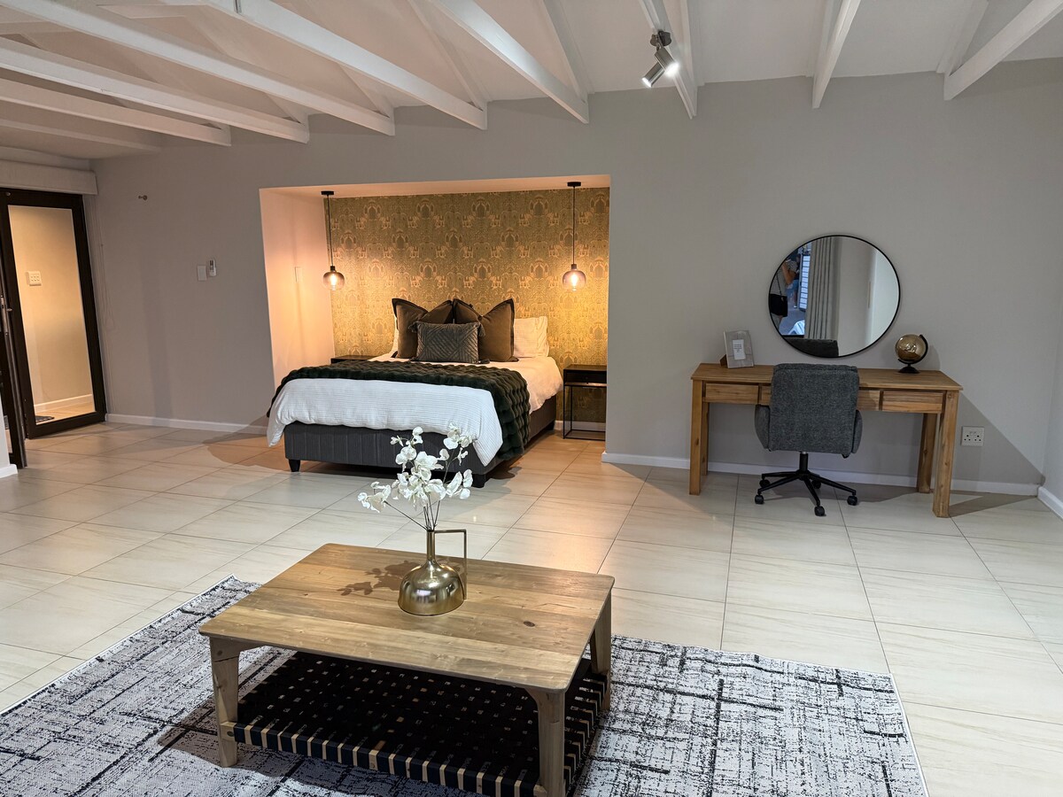Không gian sống trong nhà và ngoài trời yên tĩnh lý tưởng cho các cặp đôi hoặc khách đi công tác. Studio đầy phong cách mở ra một sân hiên lớn với braai. Tận hưởng mùa hè dài của chúng tôi ở ngoài trời! Studio có lối vào riêng biệt với nhà chính. Giường Queen với buồng tắm đứng mở và bồn cầu riêng. Nó có WI-FI, DSTV đầy đủ, một bếp nhỏ với các tiện nghi trà/cà phê, máy nướng bánh mì, lò vi sóng, tủ lạnh và bếp từ đơn. Bãi đỗ xe an toàn tại chỗ. Chúng tôi có 2 chú chó nhỏ để tăng cường an ninh.
