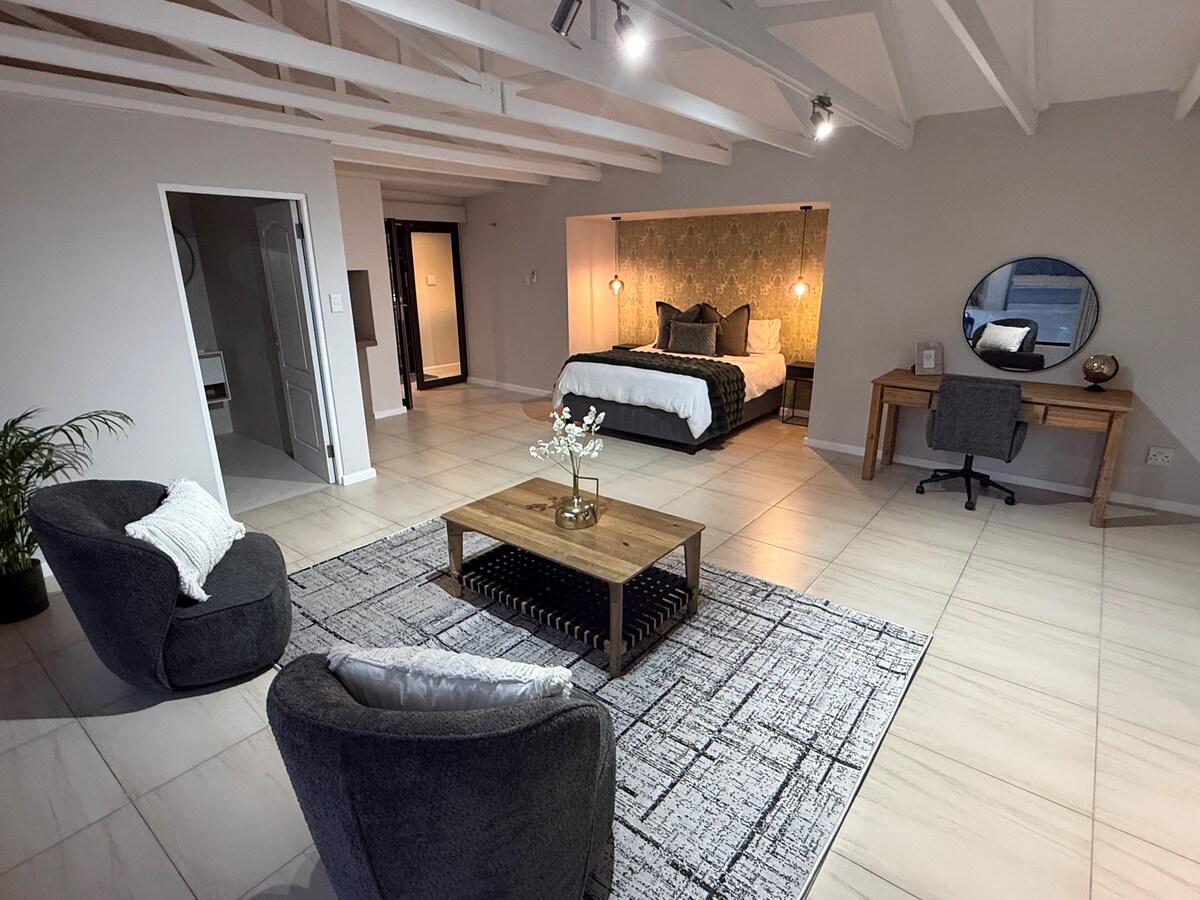 Where modern comfort meets breathtaking views. Nestled near the Helderberg Mountain in Somerset West, Couvaras Haus is a refined one-bedroom flat designed for guests who appreciate quiet luxury, natural beauty, and thoughtful detail. Just 2 km from some of the region’s most prestigious wine farms, this first-floor retreat offers sweeping mountain views, elegant interiors, and an atmosphere of calm sophistication — ideal for professionals, couples, and travelers seeking a serene escape.