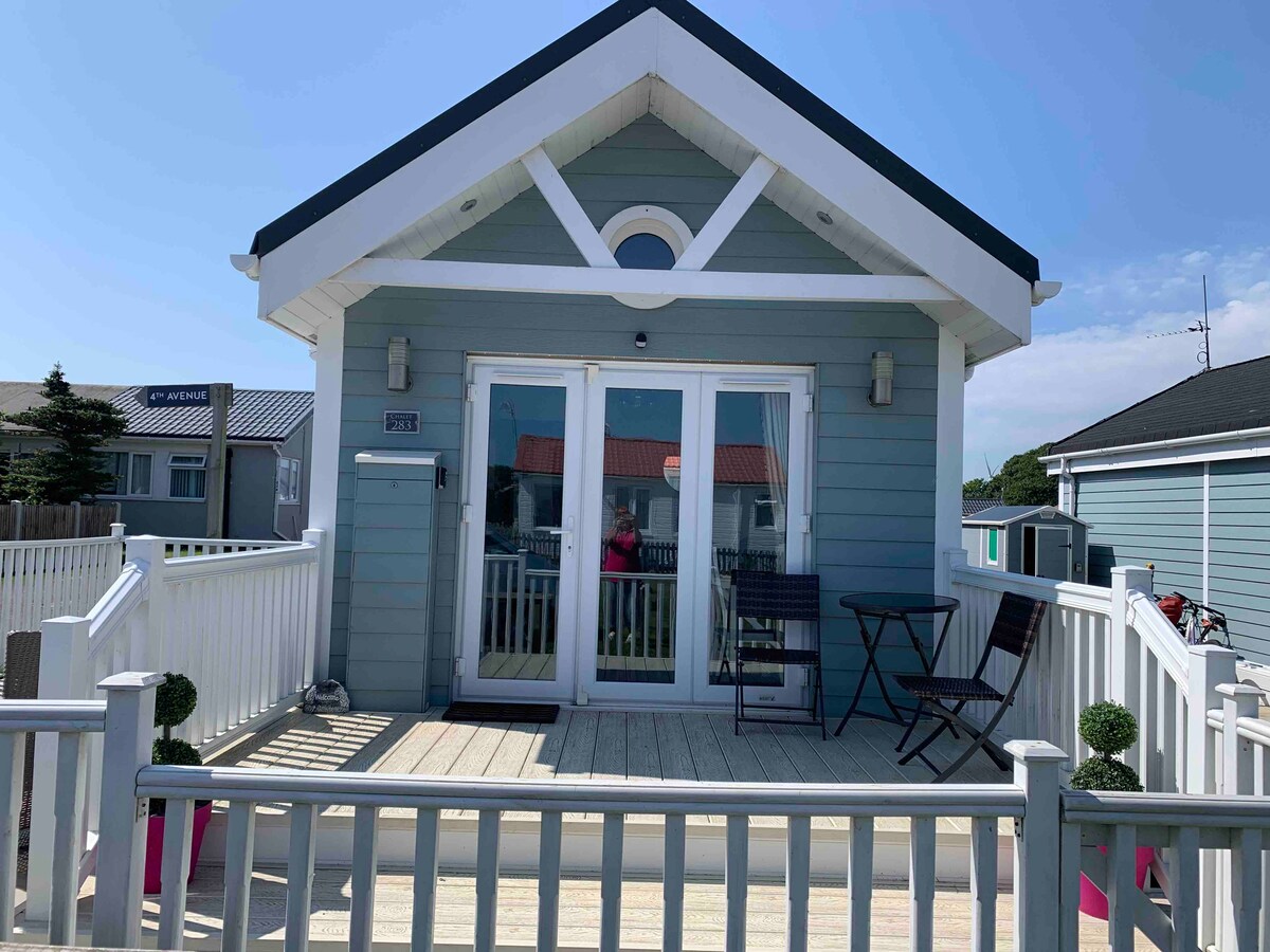 Nhà gỗ chalet 2 phòng ngủ này nằm trong Công viên nghỉ dưỡng South Shore với lối vào riêng với sân hiên có sân hiên nhìn ra một cánh đồng ngô xinh đẹp hướng ra biển, nơi những con chim sẻ bay lượn qua bàn ăn sáng của bạn. Một khung cảnh nông thôn tuyệt đẹp từ khu vườn nơi mặt trời lặn trên đường chân trời bên cạnh một bãi biển cát thân thiện với thú cưng từng đoạt giải thưởng trải dài hàng dặm đến Bridlington trong vòng 20 phút hoặc cách khác về phía Fraisthorpe. Thiên đường Doggie! woof! woof!