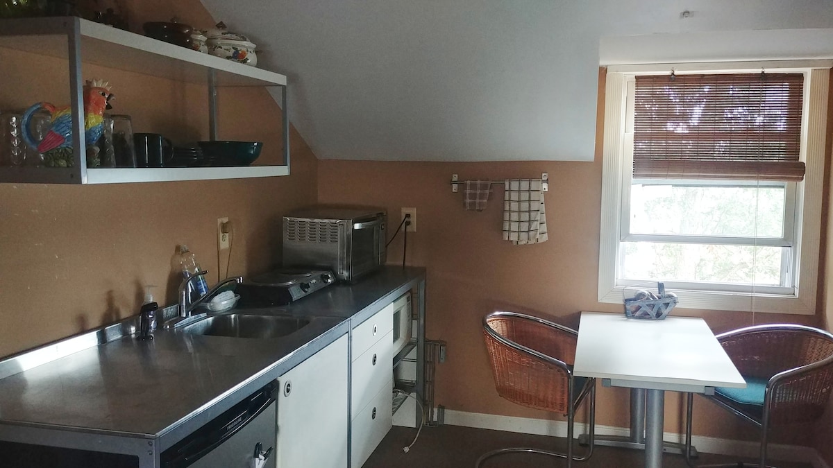 New studio apartment with separate entrance. Fully furnished kitchen, new Queen sized bed, all new furnishings including desk area, Wi-Fi, lots of storage space, new refrigerator, stove, microwave, 42" TV, and dishwasher. Unit includes your own washer and dryer and has a gorgeous lake view in front. Located close to movie theaters, bowling, restaurants, shopping malls, grocery stores, large state recreational park, skiing and convenient to airports. Bathroom inside unit with 2 recliner chairs