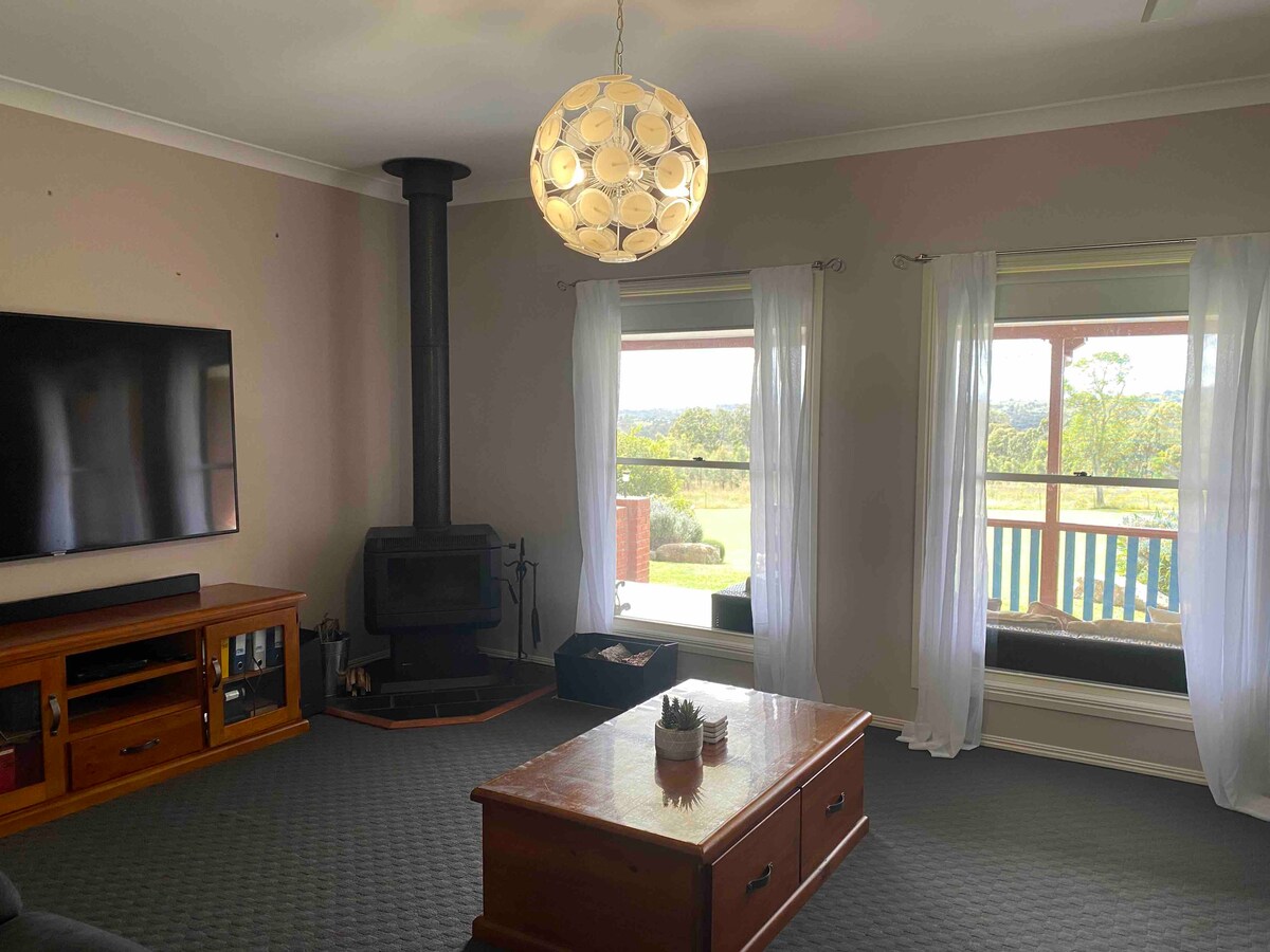 Chỗ ở rộng rãi 5 phòng ngủ 2 phòng tắm này có điều hòa không khí/hệ thống sưởi và quạt trần trong tất cả các phòng ngủ. 4 phòng ngủ có giường queen với giường king trong phòng chính rộng rãi. Nó nằm ở vị trí lý tưởng bên sườn đồi để cho phép tầm nhìn toàn cảnh tuyệt đẹp. Nó nằm trên một khu đất rộng 5 mẫu có hàng rào đầy đủ. Gần đây chúng tôi đã chuyển đến khu nhà và sống trong nhà kho trên cùng. Cả hai chúng tôi sẽ sử dụng cùng một cổng nhưng đây là tất cả những gì bạn sẽ thấy về chúng tôi. Quyền riêng tư của bạn sẽ được tôn trọng nhưng ở đây nếu bạn cần.