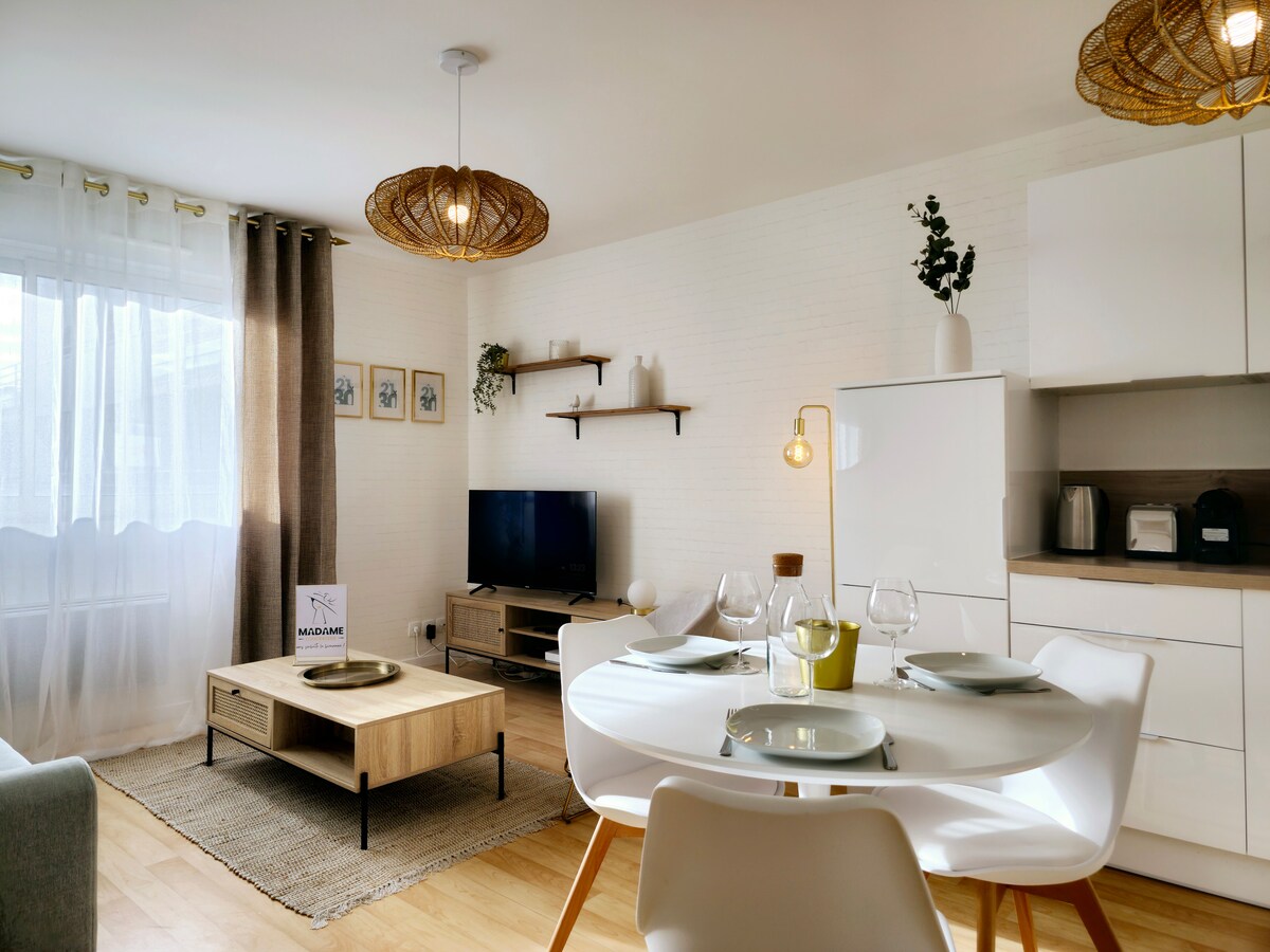 Khám phá T2 quyến rũ của chúng tôi, được tắm trong ánh sáng, với một bộ tổng thể 14m². Trang trí sạch sẽ mang đến một bầu không khí nhẹ nhàng, pha trộn sự rõ ràng, những nét vàng và một cây cối tinh tế. Tận hưởng kỳ nghỉ vàng trong một nơi cư trú có cổng, chỉ cách Place du Vert Buisson một đoạn đi bộ ngắn, đầy đủ các cửa hàng và nhà hàng. Lý tưởng cho khách đi công tác hoặc các cặp đôi. Nhà bếp đầy đủ tiện nghi, phòng khách sáng sủa và bầu không khí thư giãn. Đặt ngay để có trải nghiệm độc đáo!