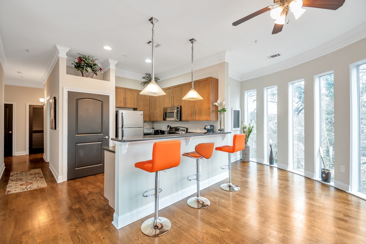 Chào mừng bạn đến với nơi nghỉ dưỡng đầy phong cách ngay trung tâm Công viên Inman! Cách các địa điểm hàng đầu của Atlanta vài bước chân — Beltline, Freedom Park Trails, Krog Street Market, MARTA và nhiều nhà hàng nổi tiếng đều nằm trong phạm vi nửa dặm. Căn hộ chung cư tràn ngập ánh sáng của chúng tôi cung cấp khu vực sinh hoạt rộng rãi và hai phòng ngủ ấm cúng. Bước ra boong riêng lớn — địa điểm hoàn hảo để thư giãn sau một ngày khám phá thành phố. Cho dù bạn đến đây để làm việc hay vui chơi, chúng tôi tự tin rằng bạn sẽ cảm thấy như đang ở nhà mình.