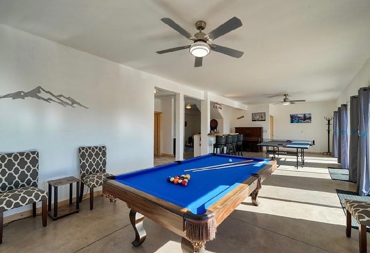 Cực kỳ rộng rãi; thân thiện với gia đình; tầm nhìn không thể tin được tại nơi nghỉ dưỡng trên núi hiện đại này! Năm phòng ngủ cộng với văn phòng; bốn phòng tắm; không bao giờ kết thúc vui vẻ trong phòng trò chơi bao gồm bóng bàn và bàn bi-a; không gian mở nhà bếp/phòng khách/phòng ăn hiện đại với tầm nhìn từ sàn đến trần của các đỉnh núi. Ngoài trời bao gồm 10 mẫu Anh, bao gồm một chuồng ngựa và nhiều sự yên bình và yên tĩnh. Đừng bỏ lỡ những kỷ niệm trọn đời với gia đình và bạn bè tại chỗ ở Buena Vista bất khả chiến bại này.
