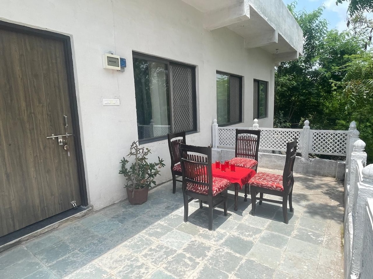 Chào mừng bạn đến với Lake Pichhola Villa, một nơi nghỉ dưỡng rộng rãi ở tầng một với hai phòng ngủ thoáng mát, mỗi phòng có điều hòa nhiệt độ và phòng tắm kèm theo. Một mạch nước phun trong phòng lớn hơn cung cấp nước nóng cho cả hai. Thư giãn trong hội trường lớn, thư giãn trên ban công hướng đông với cây cối hoặc tận hưởng lối vào sân thượng trên tầng hai. Bếp D được trang bị khiêm tốn cho trà, cà phê hoặc đồ ăn nhẹ. Với WiFi 100 Mbps và nguồn điện dự phòng đáng tin cậy, đây là một kỳ nghỉ lý tưởng cho các gia đình, bạn bè hoặc người làm việc từ xa đang tìm kiếm sự thoải mái gần nét quyến rũ của Udaipur.