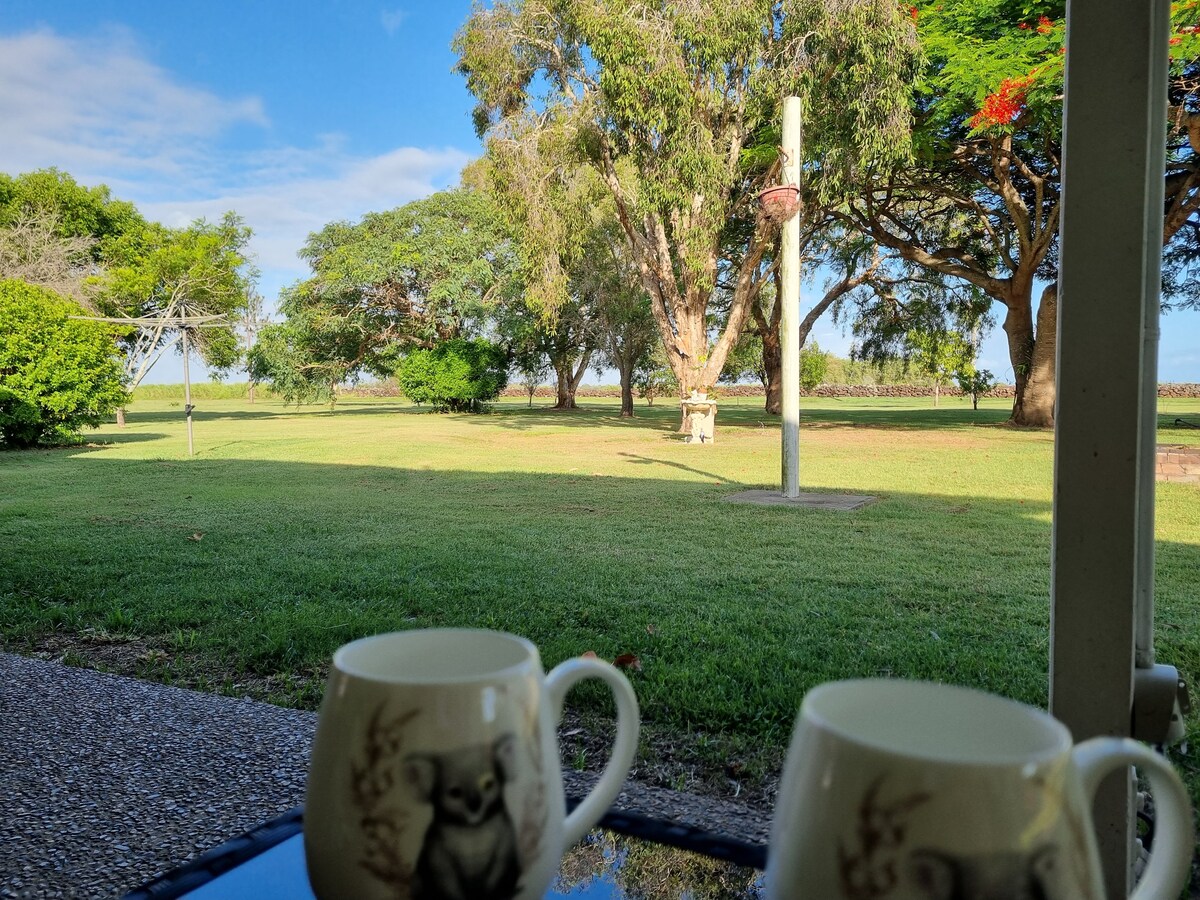 Phòng dành cho khách, nằm trên Hummock. Chỉ cần 12 phút đi bộ để quan sát với tầm nhìn ra đại dương bao quanh các trang trại xung quanh các trang trại 5 phút lái xe đến Bãi biển Bargara, rùa, nhà hàng, quán cà phê và cửa hàng tạp hóa. phòng khách phong cách WiFi miễn phí được trang bị đầy đủ với BBQ, máy giặt/máy sấy và nồi chiên không khí nhỏ/lò nướng bánh mì. Có các loại ngũ cốc ăn sáng, trái cây tươi,cà phê /túi, máy pha cà phê các loại trà Te, mứt bánh mì sữa tươi. Lên hồ bơi sân sau mà bạn tận hưởng. Sân sau đầy đủ tiện nghi Thân thiện với thú cưng rất an toàn.