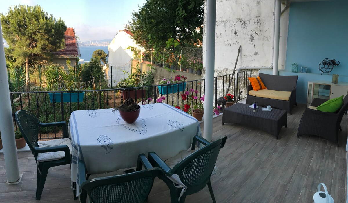 Nhà riêng 3 tầng với hai ban công và một tầng lửng có tầm nhìn toàn cảnh 180° Marmara. Sáng sủa, nghệ thuật và hoàn hảo cho thời gian lưu trú dài. Thức dậy với ánh sáng mặt trời và tầm nhìn bao quát ra biển Marmara. Tầng lửng cung cấp một bức tranh toàn cảnh 180° để đọc sách hoặc thư giãn, và một lò sưởi ấm cúng mời bạn thư giãn vào những buổi tối mát mẻ hơn. Hai ban công và phòng rộng rãi làm cho toàn bộ ngôi nhà trở thành của bạn để tận hưởng sự riêng tư. Được thiết kế bởi ba thế hệ kiến trúc sư, nó pha trộn tính cách nghệ thuật với sự thoải mái và quyến rũ.