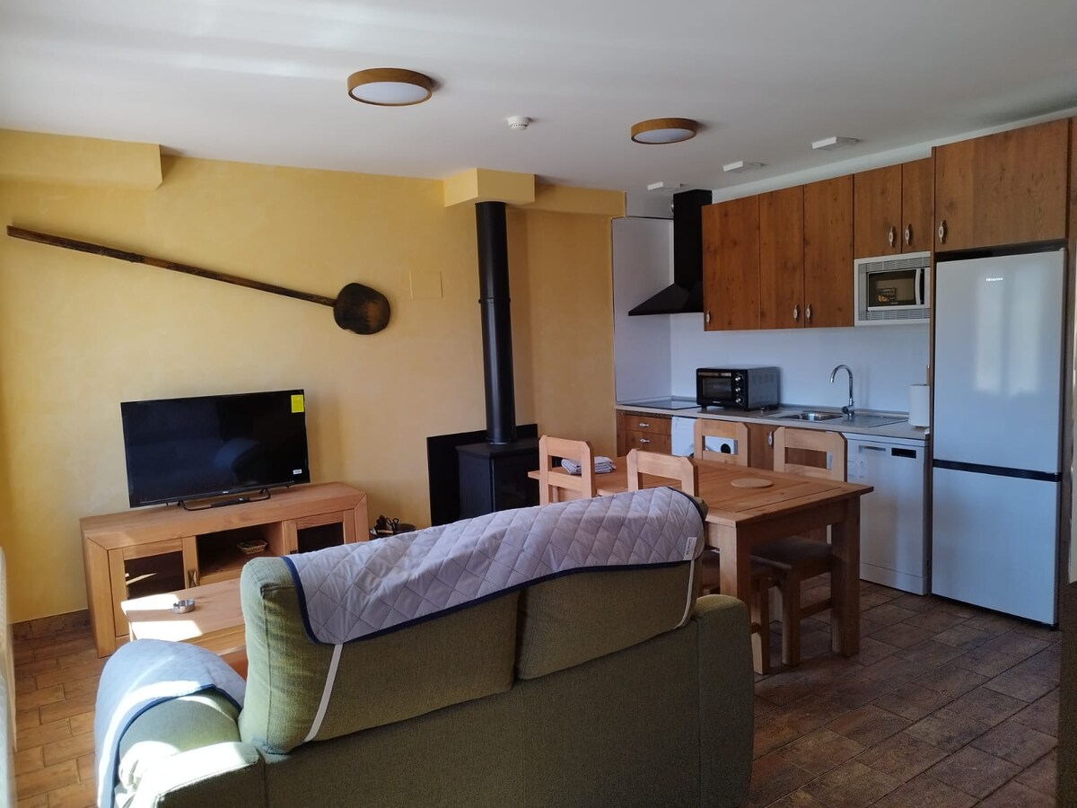 Casa de una planta de 72 m2 útiles más 50 m2 de solar. Ideal 4 personas. Dos dormitorios: cada uno con dos camas de 90 (ropa cama para juntar para cama 180 si se quiere). Posibilidad cuna y supletoria. Sala, comedor y cocina integrado. Cuarto baño completo con ducha y otro aseo pequeño. Cocina equipada con frigorífico, lavadora, lavavajillas, microondas, horno, vitrocerámica y todo el menaje. Ropa cama y toallas, secador de pelo, etc. Calefacción con estufa de pellets.