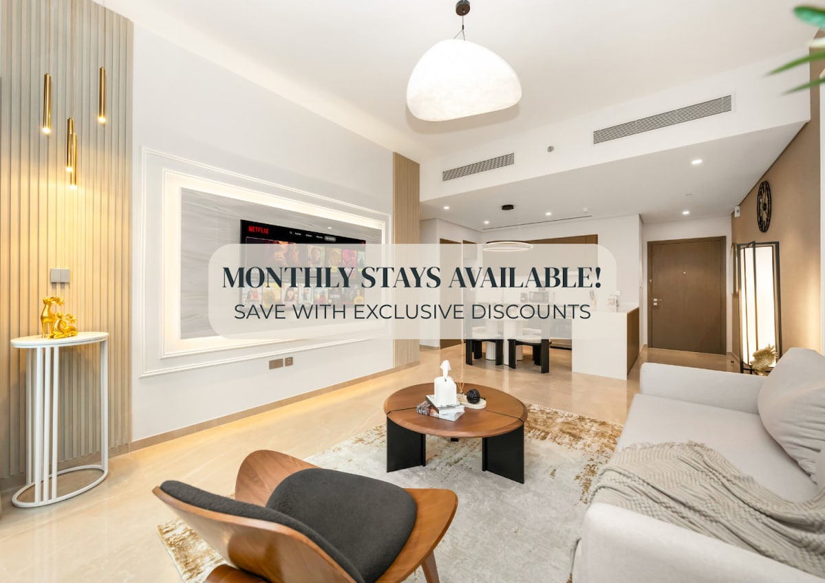 ✔️Monthly stays available — message us for exclusive discounted rates. Experience a luxurious stay at Grande Signature Residences in Downtown Dubai. This elegant 1-bedroom apartment features a stylish living space and a fully equipped kitchen for a comfortable stay. Guests can enjoy access to the building’s stunning infinity pool, which offers beautiful views of the iconic Burj Khalifa. Located just 5 minutes from Dubai Mall, it delivers convenience and SmartStay’s signature service.