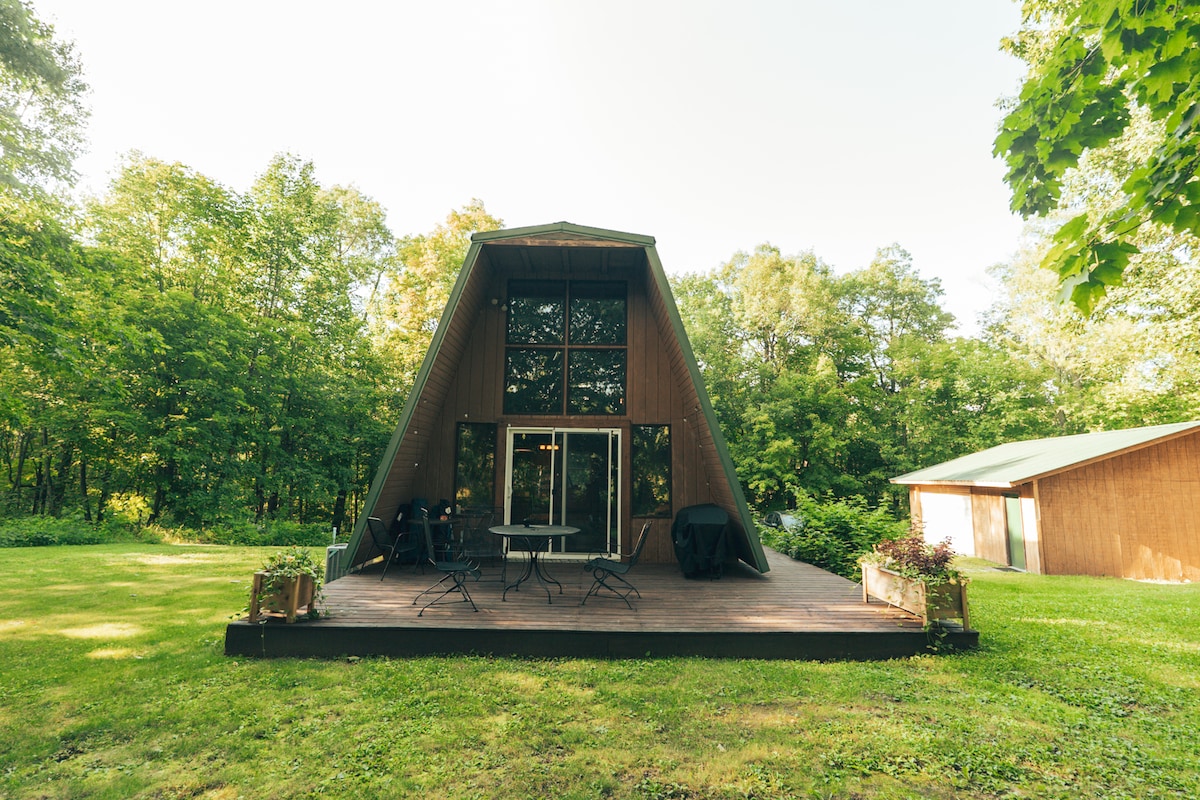 Thư giãn trong ngôi nhà gỗ 1 phòng ngủ quyến rũ của chúng tôi nằm ngay trung tâm của thiên nhiên. Hoàn hảo cho một kỳ nghỉ lãng mạn hoặc một kỳ nghỉ cuối tuần yên bình, nơi nghỉ ngơi thanh tĩnh này cung cấp hơn một dặm đường mòn rừng - lý tưởng cho những chuyến đi bộ dài, trượt tuyết băng đồng hoặc đi bộ trên tuyết. Thư giãn bên cây cầu có mái che và thả lưới câu cá vào buổi chiều yên tĩnh, hoặc chỉ đơn giản là ngắm hươu lang thang qua lại ngay trước cửa nhà bạn. Cho dù bạn đang tìm kiếm sự cô đơn hay phiêu lưu, đây là nơi tuyệt vời để ngắt kết nối và nạp năng lượng.