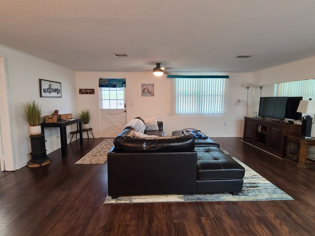Khu nghỉ dưỡng riêng của bạn trên một mẫu đất nép mình trên một con kênh đến sông Withlacoochee, bao quanh 2 bên của chỗ ở. Thư giãn trên hiên nhà nhìn ra mặt nước khi bạn xem chim và hươu chơi đùa. Trẻ em sẽ thích xích đu lốp xe, đồ chơi như Lego, nhật ký Lincoln, bàn bi-a và bóng trượt tuyết. Thuyền kayak có sẵn cho khách của chúng tôi đang chờ phiêu lưu. Bond xung quanh hố lửa, đi bộ trên những con đường mòn, thư giãn trong võng và câu cá trên bến tàu. Thiết lập màn hình lớn để xem phim. Chào mừng bạn đến với chuyến đi của mình!
