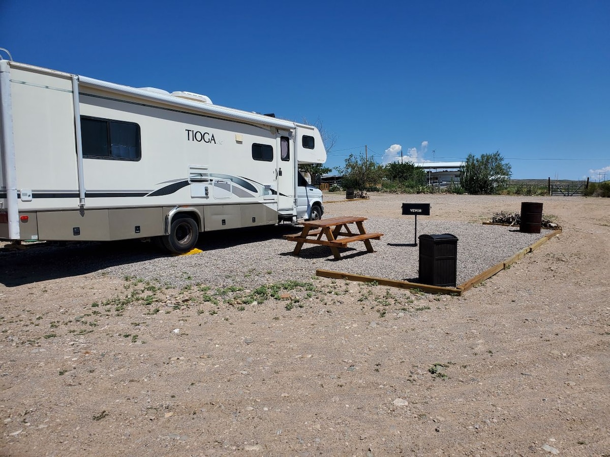 Spacious RV sleeps five adults. Near Caballo Lake