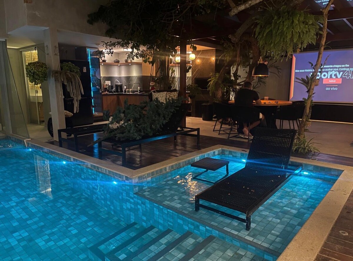 Nhà 2 tầng trong một căn hộ chung cư đóng cửa với an ninh 24 giờ với: phòng khách, bếp đầy đủ, khu vực ăn uống, 4 phòng ngủ (2 phòng tắm khép kín) ban công riêng có khu vực sành ăn với thịt nướng Bồn tắm nước nóng, TV thông minh 80 inch và phòng xông hơi Cộng đồng có cổng có: không gian ẩm thực với tiệc nướng, phòng tập thể dục, bãi đỗ xe Hồ bơi dành cho người lớn và trẻ em lý tưởng cho tối đa 8 người, khăn trải giường và khăn tắm phòng tắm được cung cấp Vài phút từ Bãi biển Tartaruga và Geribá Chỗ đỗ xe: 3 chỗ