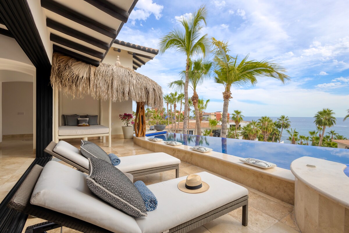 Khám phá các đánh giá của chúng tôi! Căn penthouse riêng mới có hồ bơi lối vào bãi biển trong cộng đồng Pedregal xinh đẹp, an toàn, riêng tư, trên núi ở cuối trung tâm Cabo San Lucas, ngay phía trên Khu nghỉ dưỡng Waldorf Astoria. Quang cảnh tuyệt vời. 5 phút đi bộ đến thị trấn, bến du thuyền, bãi biển, nhà hàng, hoạt động dưới nước, mua sắm và tham quan. Dịch vụ hỗ trợ, Hai nhà hàng tại chỗ, sân bóng bàn/quần vợt, các lớp thể dục, bãi biển riêng. Lối vào chính không có chìa khóa. Bạn cần phòng khác? Xem Air B N B. com/room/16557152