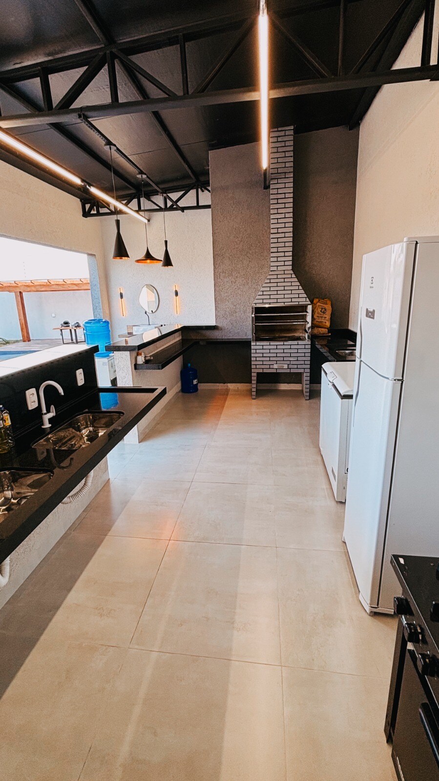 🎉 O espaço perfeito para seu evento está aqui! 🏊 Piscina aquecida com hidromassagem e prainha – água salinizada (sem cloro) mais saudável e agradável! 🍖 Área gourmet completa: churrasqueira, freezer, geladeira e fogão industrial com forno; 🎊 Salão de festas com 20 mesas, 80 cadeiras e ventiladores; ⚽ Quadra de areia iluminada para diversão até à noite; 🚻 Banheiros feminino e masculino; 🛏️ Suíte completa para maior conforto.