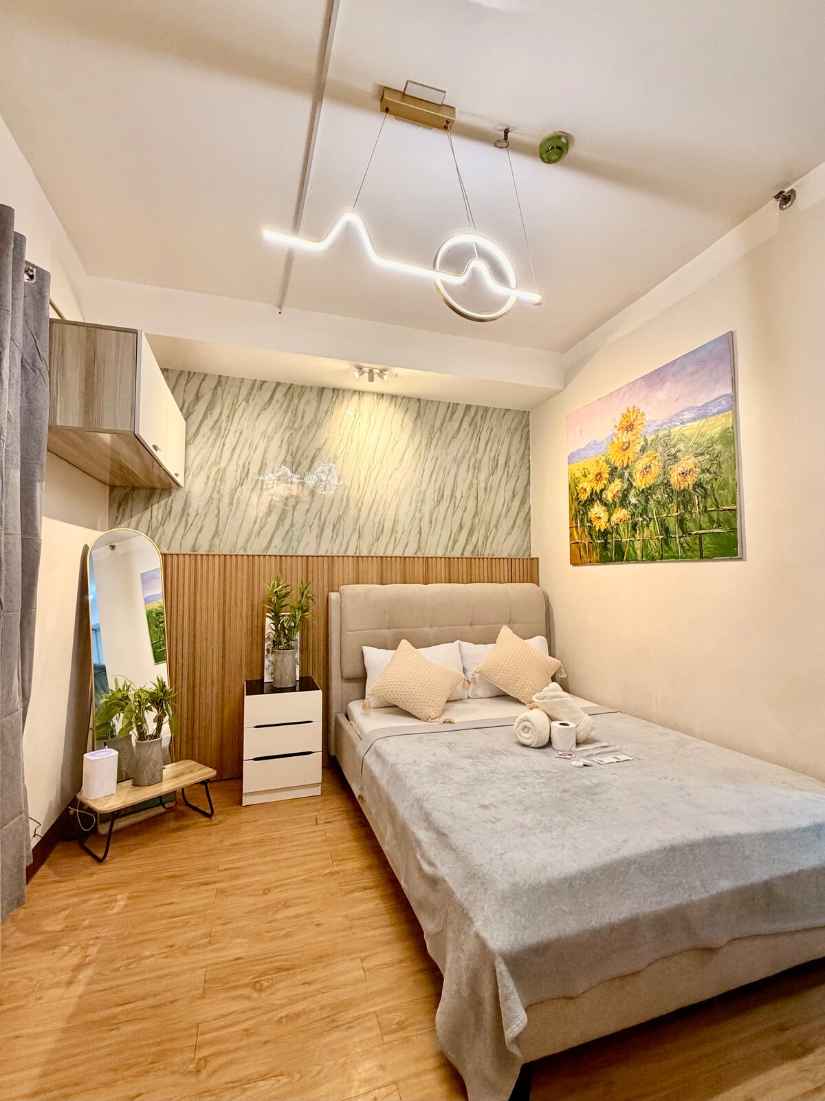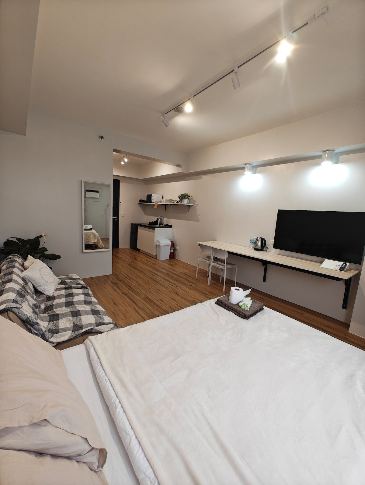 Enjoy a Stockholm-themed experience in this brand-new 23 sqm studio at Avida Aspira, Cagayan de Oro City. Designed with a Swedish minimalist style, the space features a cozy bed for two, a flexible work-and-dining area, a sleek kitchen for light cooking, and a modern bathroom with hot & cold shower. Centrally located near malls, cafés, and business centers, it’s the perfect blend of style, comfort, and convenience for couples, solo travelers, or business guests.