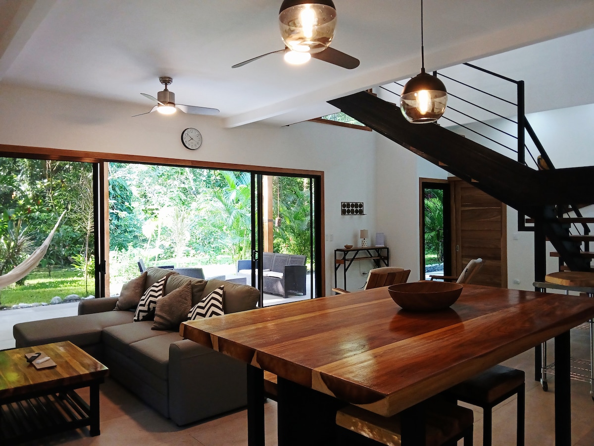 Một ngôi nhà ven sông, với hồ bơi tự nhiên, tòa nhà gần đây với rất nhiều sự quyến rũ và theo phong cách Caribe đương đại và rất tươi mới. Đó là một câu chuyện. Khu vực cây xanh rộng rãi được rào kín hoàn toàn. Chỗ ở có một nhà khách trong vườn, có thêm một phòng ngủ, phòng khách và phòng tắm. Người hâm mộ . Các khu vực cây xanh rộng được bao quanh bởi rừng nhiệt đới, nơi có sự đa dạng của hệ thực vật và động vật bản địa, bướm, khỉ congo, gấu lười biếng, cự đà, v.v.