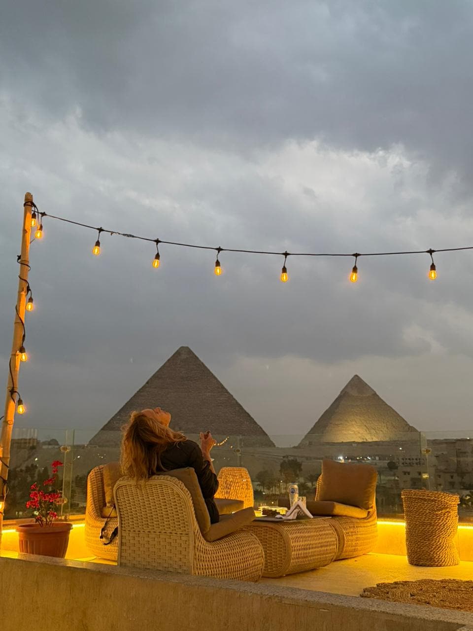Ở ngay trung tâm Giza với tầm nhìn ngoạn mục ra Kim tự tháp và Bảo tàng Đại Ai Cập, có thể nhìn thấy ngay từ ban công của bạn. Nằm trên một tầng cao, căn hộ yên tĩnh và yên bình, với thiết kế hiện đại pha trộn đẹp mắt với những nét cổ xưa. Tòa nhà có hai thang máy, và ở tầng dưới bạn sẽ tìm thấy một đại siêu thị, tiệm bánh và cửa hàng tạp hóa. Dễ dàng tiếp cận và gần với tất cả các điểm tham quan lớn, đây là sự pha trộn hoàn hảo giữa sự thoải mái, lịch sử và tiện lợi.