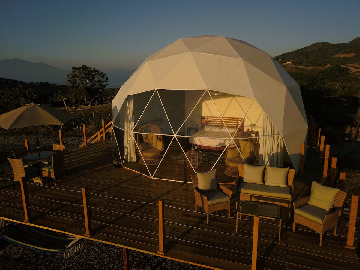We have 3 more https://abnb.me/dobQuKhzUHb https://abnb.me/J2QI6zIzUHb https://abnb.me/4CukDRDzUHb This dome is a shell structure built from metal rods in this case, that allow the dome to withstand very heavy loads and high winds despite its lightweight structure. Most of the time when you think of glamping being off-grid comes with it. While you're not exactly off-grid here, as you do have electricity and wifi but you are off the beaten path enough to catch the sunset&sunrise from your dome.