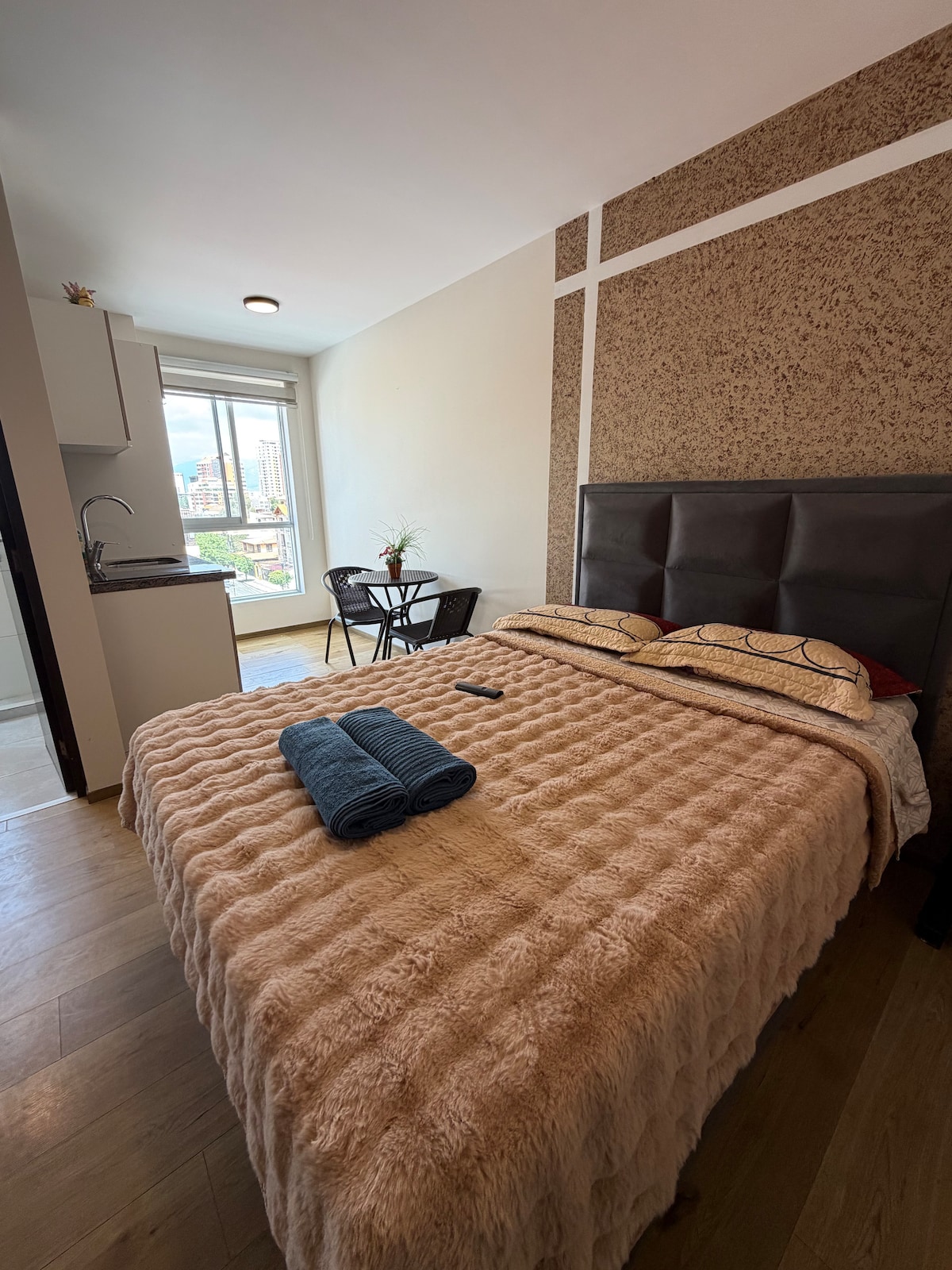 Chào mừng bạn đến với căn hộ sang trọng rộng rãi của chúng tôi ở vị trí đắc địa! Cảm giác🏢 rộng rãi cho du khách từ doanh nghiệp. 🛏️phòng ngủ có giường 3 chỗ và tủ quần áo. Sân thượng🌇 riêng với tầm nhìn đẹp nhất ra thành phố. Bãi 🚗 đỗ xe riêng trong khu chung cư cao cấp. 🚍 Giao thông công cộng tại cửa. 🛍️ Cửa hàng, nhà thuốc và nhà hàng nằm trong khoảng cách đi bộ. 🛒 Bên cạnh siêu thị Hipermaxi 🏞️ Đối diện công viên Nhật Bản Đặt ngay để có một kỳ nghỉ thoải mái và khó quên. Chúng tôi đang chờ bạn!