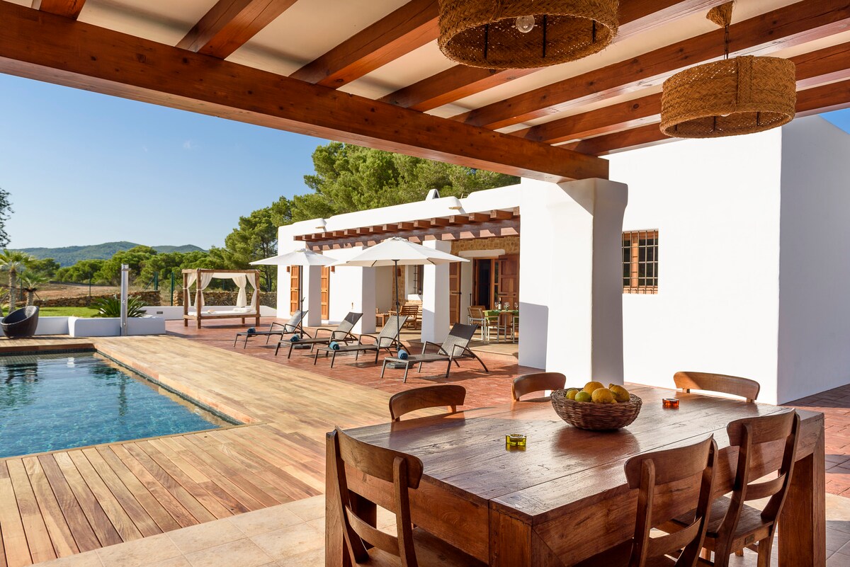 Finca phong cách Ibiza đích thực với tường đá và mái sabina cao 5mts. Ngôi nhà được phân loại là Di sản lịch sử. Ngôi nhà 350mts và 4000mts vườn, được phục hồi hoàn toàn với tất cả sự thoải mái của thiết kế, với khu vườn đẹp, vườn cây ăn quả và được bao quanh bởi rừng, sân thượng nơi bạn có thể thưởng thức các bữa ăn và bữa tối amena dưới ánh sáng của các vì sao. Vị trí hoàn hảo, 5 phút. Đi bộ từ làng, gần những bãi biển đẹp nhất Tây Nam. Không. ETV-1936-E
