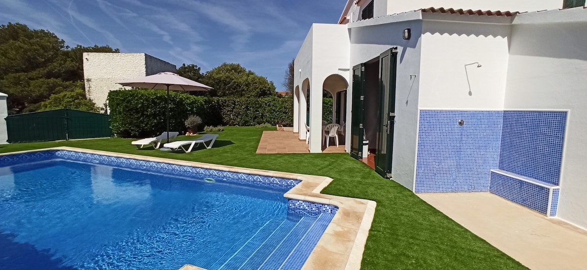 KHÁM PHÁ SỰ QUYẾN RŨ CỦA VILLA AURE Menorca là một thiên đường Địa Trung Hải, và Villa Aure là lựa chọn hoàn hảo để tận hưởng nó. Với hai phòng ngủ đôi, điều hòa không khí, bếp đầy đủ tiện nghi (ngay cả đối với paellas) và phòng khách ấm cúng, nó đảm bảo thời gian lưu trú thoải mái. Thư giãn trong hồ bơi riêng lớn và kết nối với WiFi miễn phí. Ngoài ra, hãy tận hưởng sự chú ý cá nhân của Miguel, chủ nhà của bạn ở Menorca.