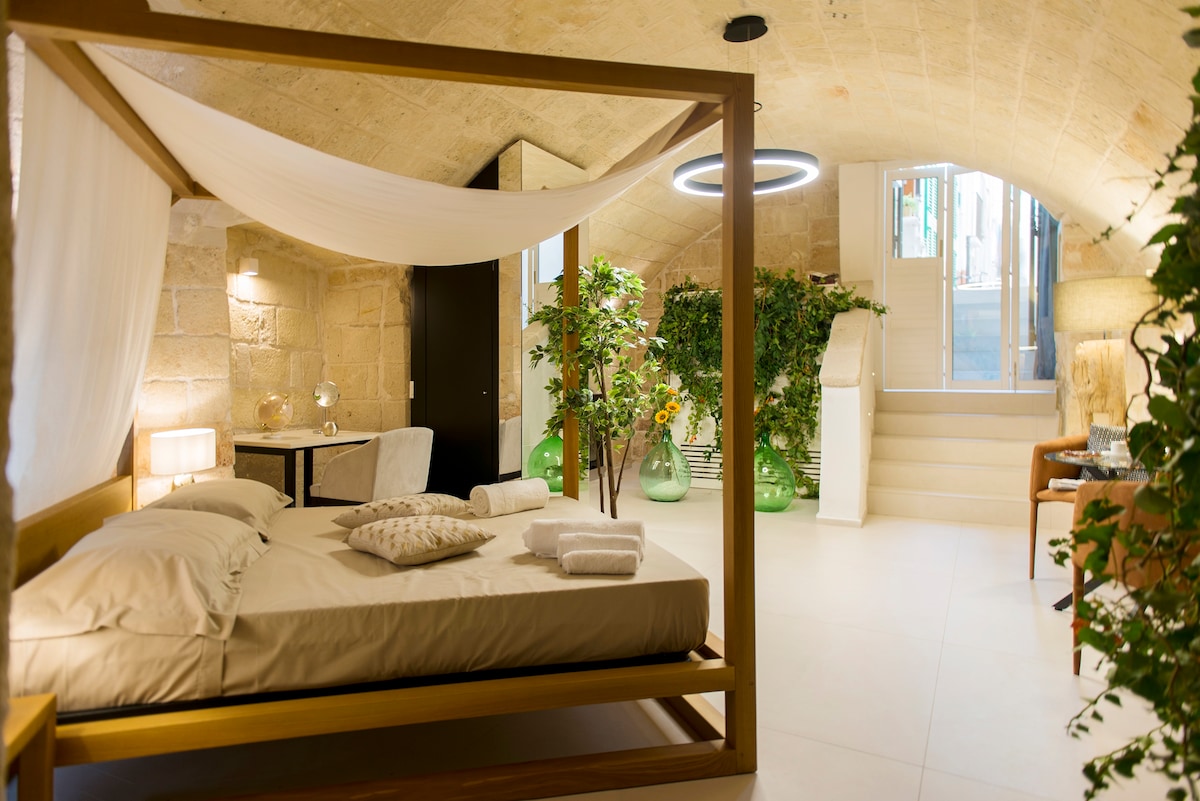 Palazzo Manzoni là giải pháp lý tưởng cho những ai muốn có trải nghiệm theo phong cách "Apulian" mà không phải hy sinh tất cả các tiện nghi. Phong cách thiết kế truyền thống cho một trải nghiệm khó quên về thư giãn và riêng tư. Trên teto, một nơi nghỉ dưỡng yên tĩnh và thư giãn được trang bị sự riêng tư tuyệt đối, với vòi sen, hoàn chỉnh với ghế và bàn, để tận hưởng trọn vẹn từng khoảnh khắc.