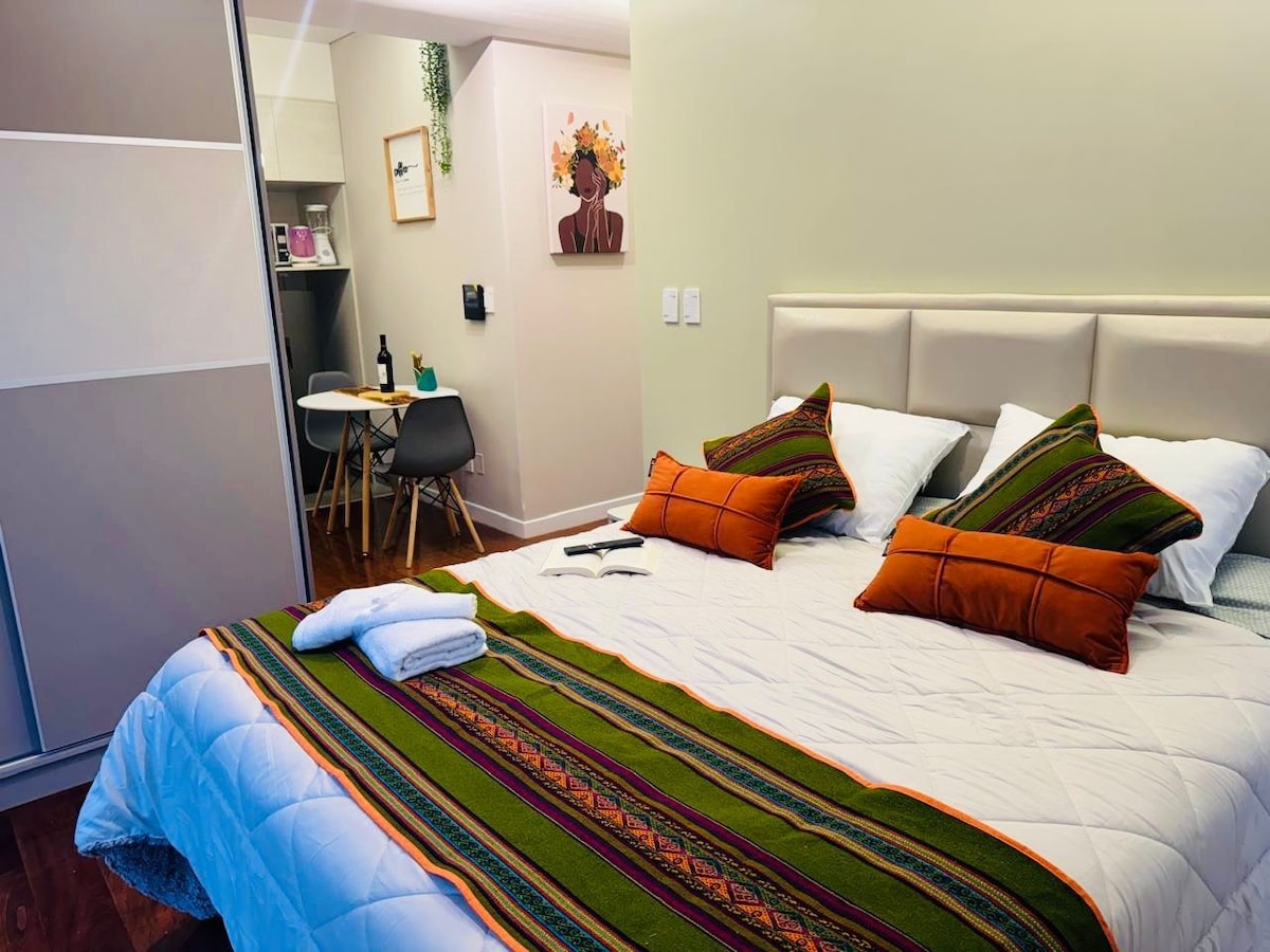 Avisanos si deseas dos camas simples o una cama king size nos adapatamos a tu requerimento. Moderno y elegante en la mejor zona de la ciudad, con una vidts imperdible. Ideal para una estadía cómoda. Equipado con cocina completa, Wi-Fi y cama confortable y parqueo. A pasos de cafés, tiendas y puntos clave. Perfecto para quienes valoran el diseño, la ubicación y la funcionalidad en un solo lugar. ¡Todo lo que necesitás, donde lo necesitás!