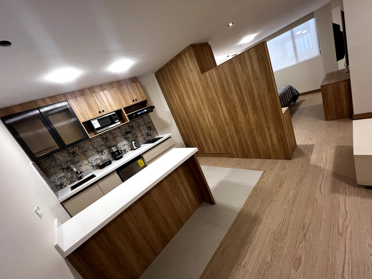 Một Suite hoàn toàn mới ngoạn mục tọa lạc tại khu phố tốt nhất của Cuenca "El Vergel". Suite có phòng ngủ cỡ Queen, 1 phòng tắm đầy đủ sang trọng, bếp được trang bị rộng rãi và cũng có khu vực làm việc được trang bị tốc độ internet tốt nhất. Môi trường xung quanh của căn hộ thật đáng kinh ngạc, sông, công viên, khu ẩm thực, tiệm bánh, sân vận động, trung tâm thành phố, trung tâm lịch sử, trường đại học, Phòng khám, Đại học, Ngân hàng trong bán kính 500 mét.