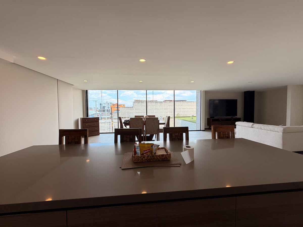 Căn hộ được trang bị và trang trí đẹp mắt ở Metepec, gần khu vực vàng, mới, hiện đại và có tầm nhìn ngoạn mục ra đầm phá. Một nơi lý tưởng để dành một cuối tuần để tìm hiểu ngôi làng kỳ diệu và hoàn hảo cho các nhân viên điều hành. Một căn hộ chức năng và phù hợp cho người khuyết tật, nằm ở tầng 1 và cũng có thang máy. Trên sân thượng, bạn sẽ tìm thấy một bữa tiệc nướng để chuẩn bị thịt nướng và sống với gia đình và bạn bè tận hưởng khung cảnh tuyệt vời.