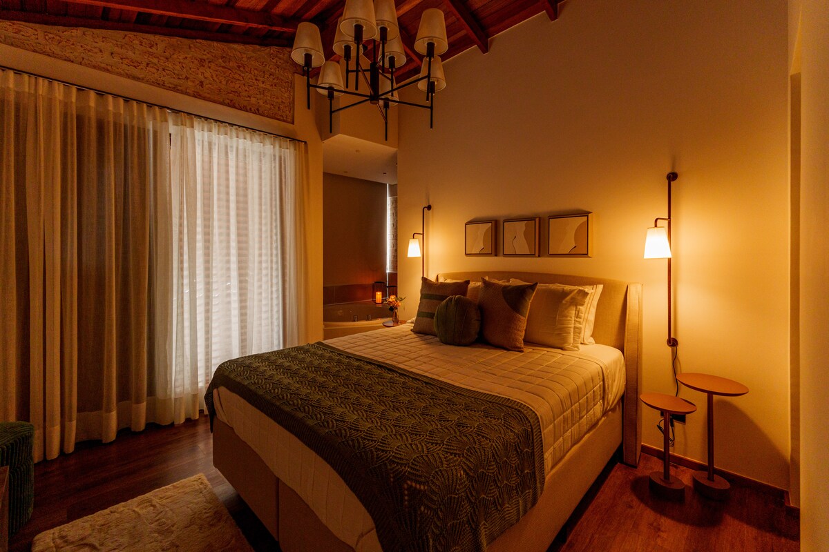 Descubra um refúgio exclusivo a 13 km de Monte Verde, cercado por natureza preservada. Chalés envidraçados com arquitetura contemporânea oferecem integração total à paisagem e muito conforto. No mezanino, solarium e jacuzzi dupla criam um SPA privativo, com piso aquecido e lareira para os dias frios. Aproveite o lago com pesca esportiva, a trilha à beira do riacho e o céu estrelado da serra. Agora com cesta de café da manhã para começar o dia com sabor e carinho! 🌿