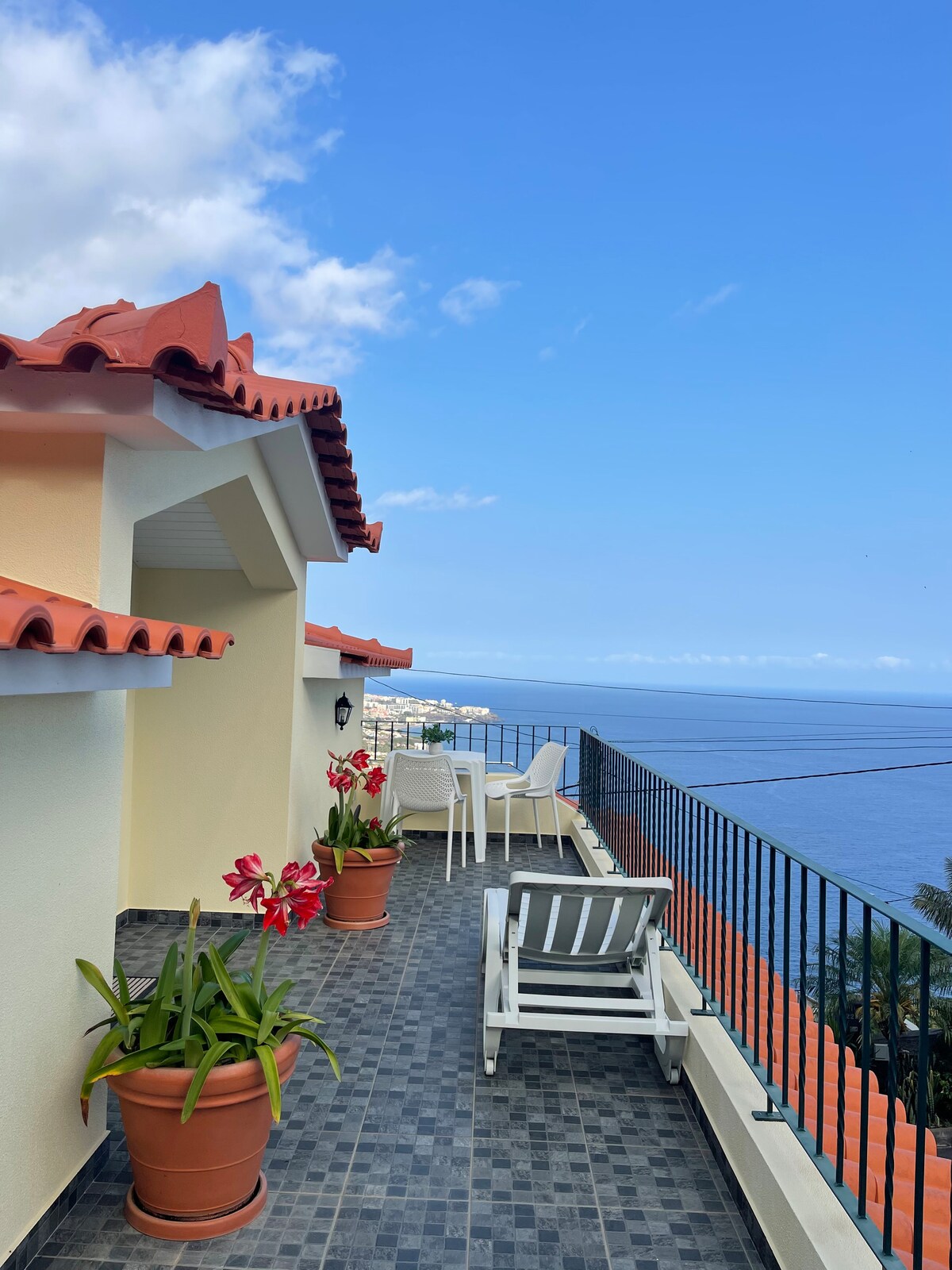 Không gian với ánh nắng mặt trời tuyệt vời với tầm nhìn yên bình và tuyệt đẹp ra biển, núi và các thành phố Câmara de Lobos và Funchal. Chỗ nghỉ này nằm ở tầng 3 của một ngôi nhà riêng với lối đi riêng từ phía bên của ngôi nhà. Nó có ba phòng ngủ, một phòng tắm và một không gian mở với phòng khách, nhà bếp và khu vực ăn uống. Lối vào cho phép khung cảnh của một chiếc ghế dài được hưởng lợi từ ánh nắng mặt trời và tầm nhìn tuyệt vời ra biển và núi.