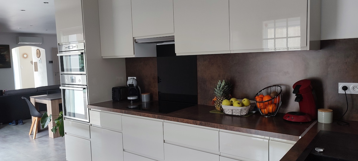 Ở cổng Camargue ở Vauvert, ngôi nhà lý tưởng với tất cả tiện nghi cho gia đình gần bãi biển và hồ bơi nước nóng Khu vườn rộng 600 m² với sân thượng hồ bơi nước nóng, tắm nắng và tiệc nướng Nhà máy lạnh có máy giặt, máy sấy Đường lái xe nội bộ lớn đến công viên 2 xe Gần các bãi biển Grau du Roi và La Grande Motte 30 mn Nimes và Aigues Morte 30 phút Pont du Gard at 50 mn ... Saintes Marie de la Mer at 40 mn