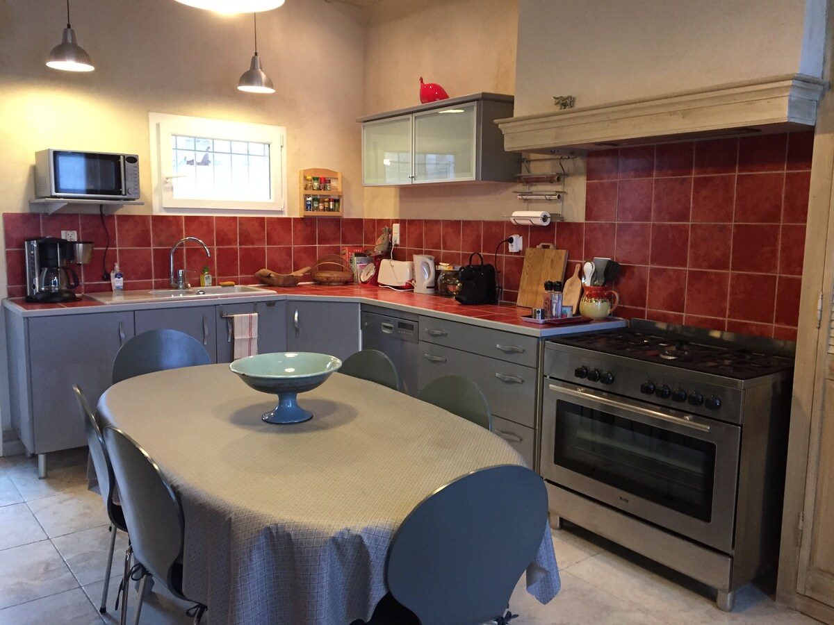 Căn hộ hình vòm rộng 120 m2 bao gồm một bếp mở với phòng ăn và phòng khách, 2 phòng ngủ liền kề lớn, có phòng tắm và phòng tắm vòi sen (mỗi phòng có nhà vệ sinh) và một sân riêng. Nằm ngay trung tâm của một ngôi làng ở rìa garrigues, gần Pont du Gard (cách ga Nîmes Pont du Gard TGV 15 phút, cách Arènes de Nîmes 20 phút, cách Uzès 25 phút, cách Camargue và bãi biển 45 phút). Sử dụng hồ bơi của chủ sở hữu từ đầu tháng 5 đến cuối tháng 9.